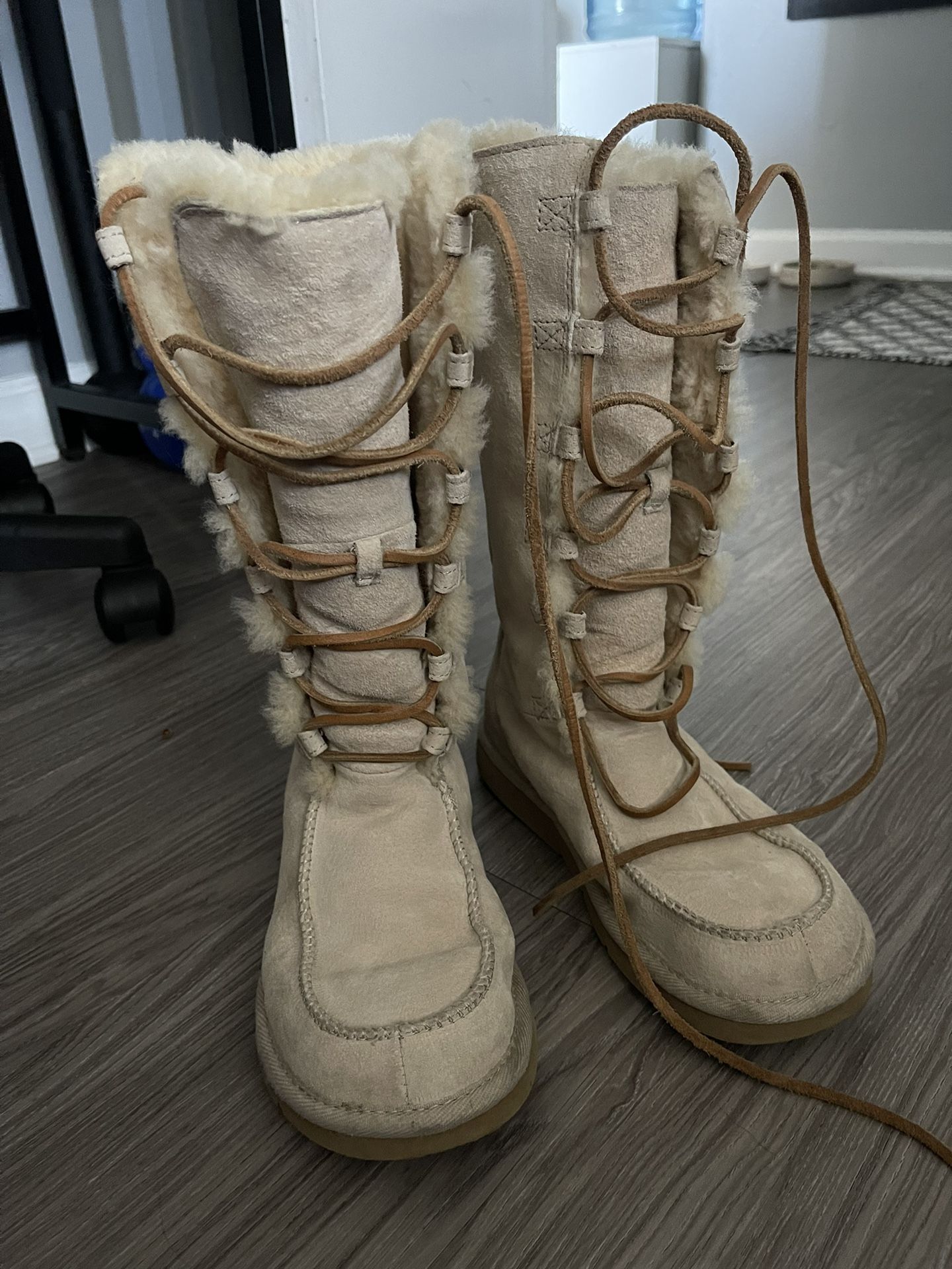 Brand new Ugg boots with strings. Never worn before size 7