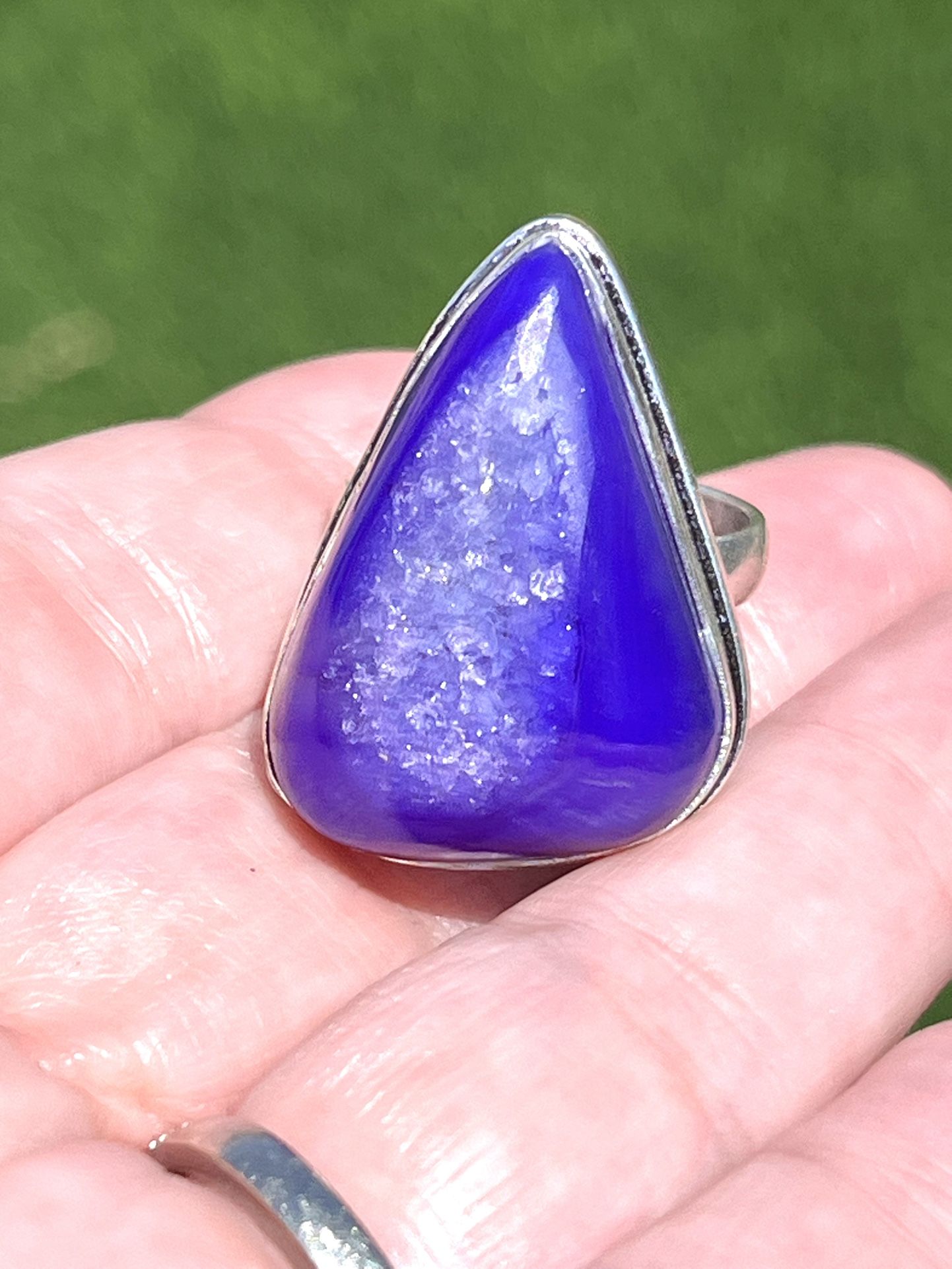 Gorgeous Purple Blue Botswana Agate Druzy Silver Ring Sz 9. Pick up Bell/Grand.