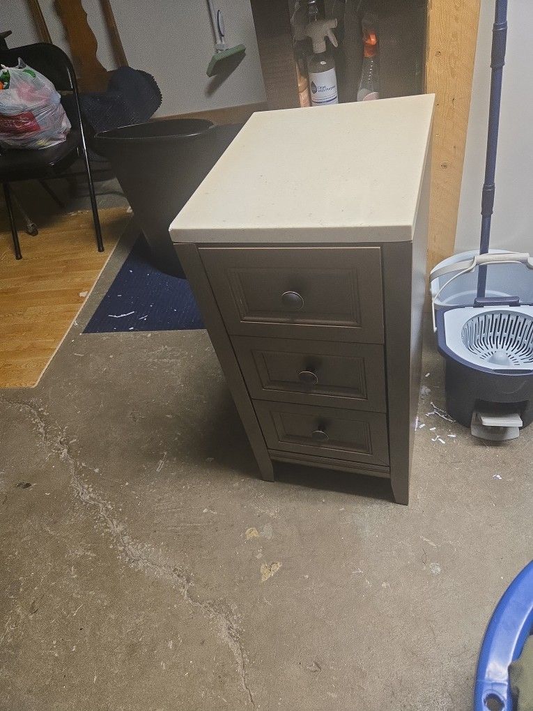 Nice cabinet with 3 drawers. Was used in bathroom can be used anywhere l