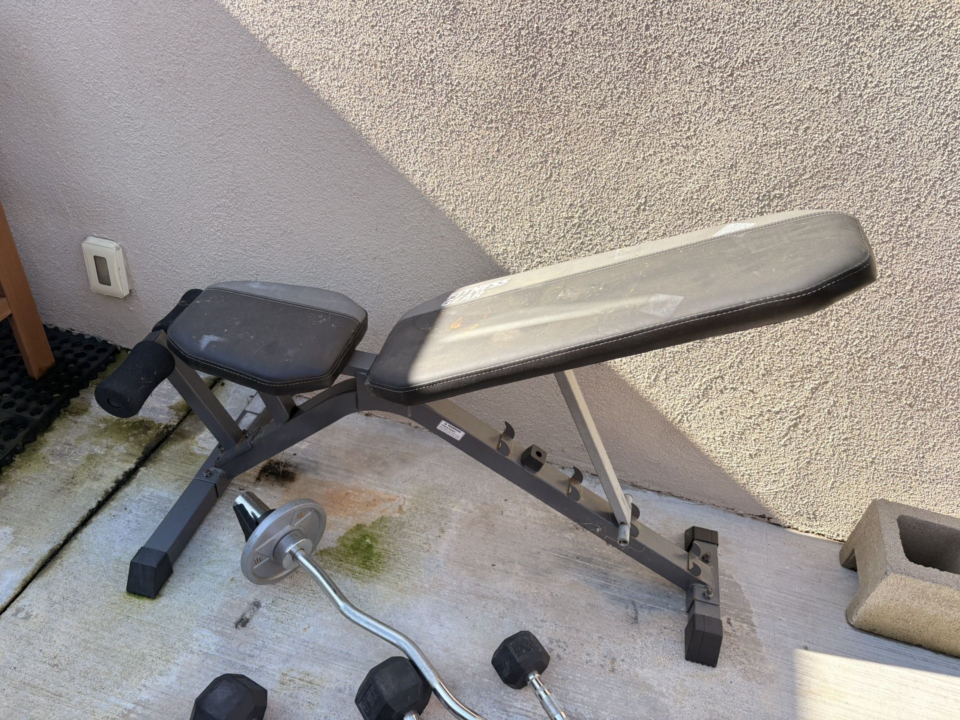 Adjustable Weight Bench – Fitness Gear – Incline / Decline / Flat Price: $120 OBO Description: Selling a Fitness Gear adjustable workout bench in good used condition. This is a solid, heavy-duty home gym bench that supports: • Flat bench • Incline bench • Decline bench • Sit-ups / ab work • Dumbbell & barbell training Features: • Strong steel frame • Adjustable back positions • Adjustable leg support rollers • Comfortable padded seat and backrest • Very stable — no wobble • Great for chest, shoulders, arms, abs, and full body workouts Bench is used but fully functional. Upholstery shows normal cosmetic wear from use and being stored outdoors, but padding is solid and frame is strong. Retail is $180+ new. Pickup only – Costa Mesa. Cash preferred.
