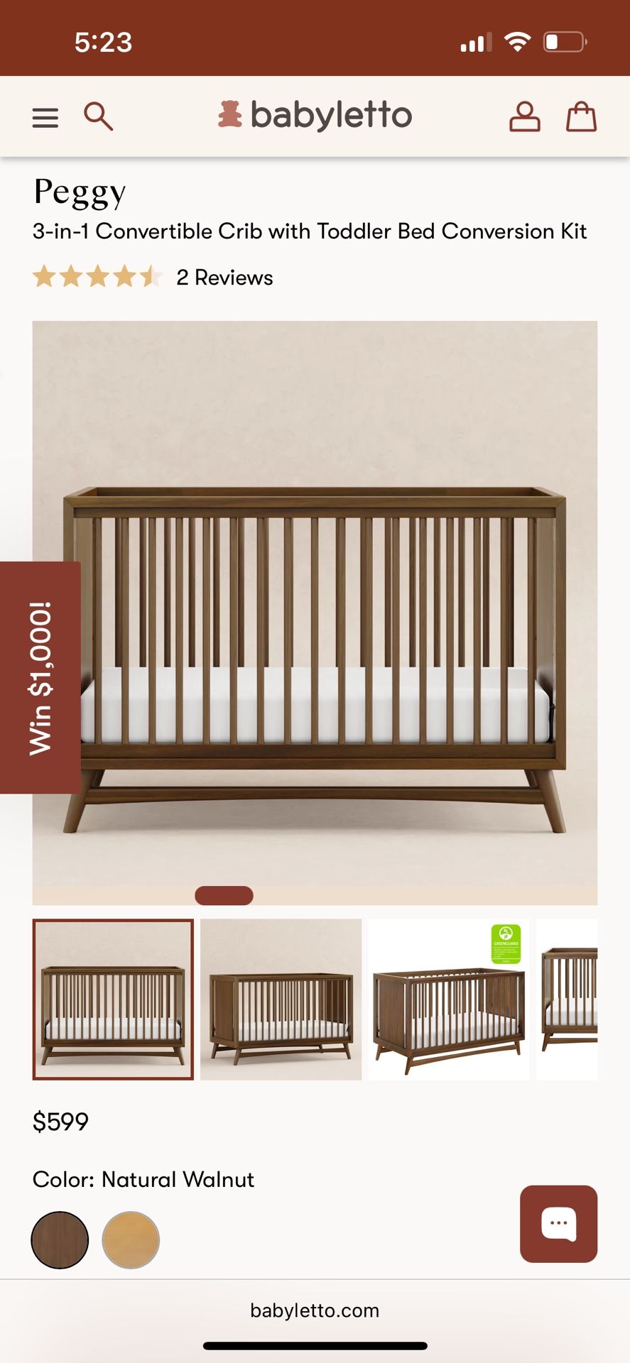 Babyletto Peggy 3-in-1 convertible crib with toddler bed. Real wood. Retails for $599. Minor scratches