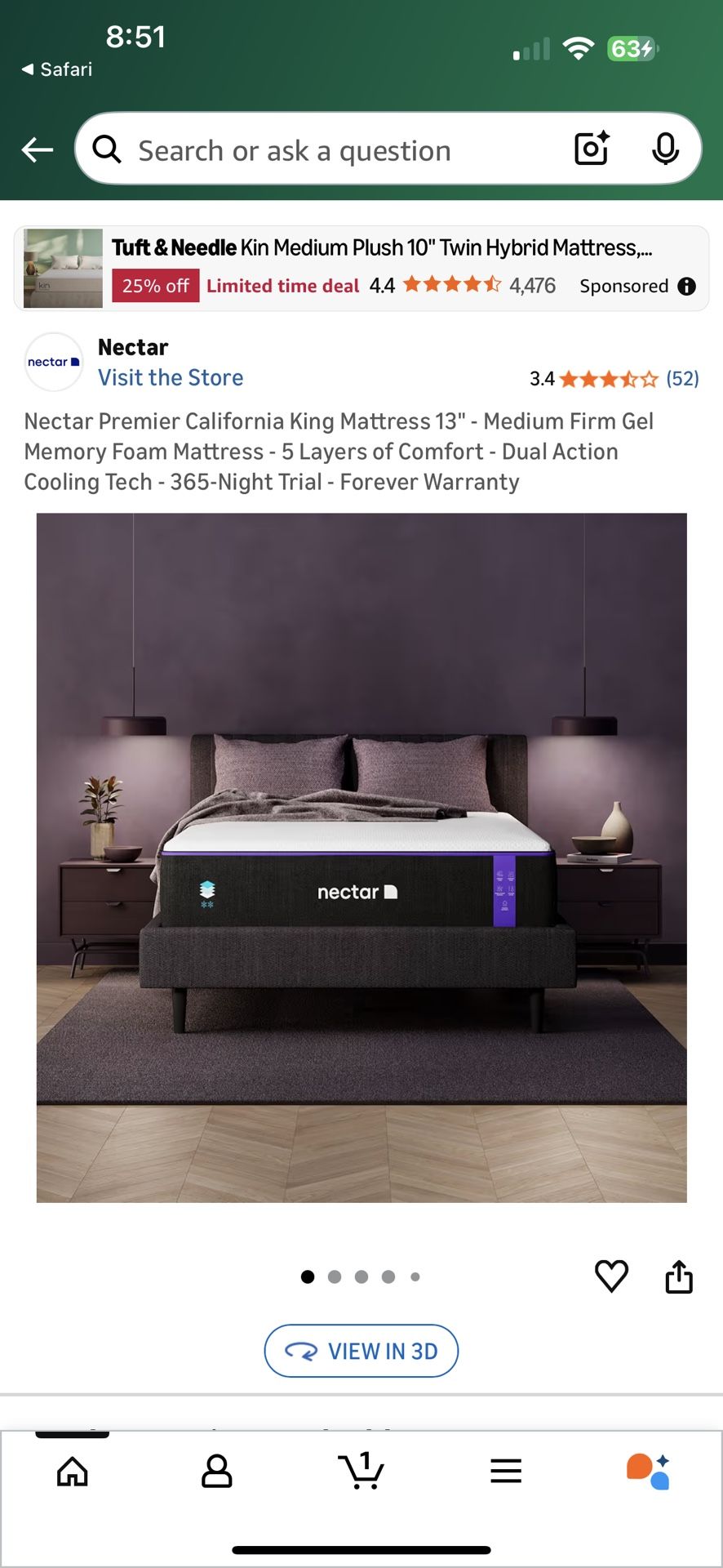Cali King Nectar Memory Foam Purple Mattress WITH modern bed frame