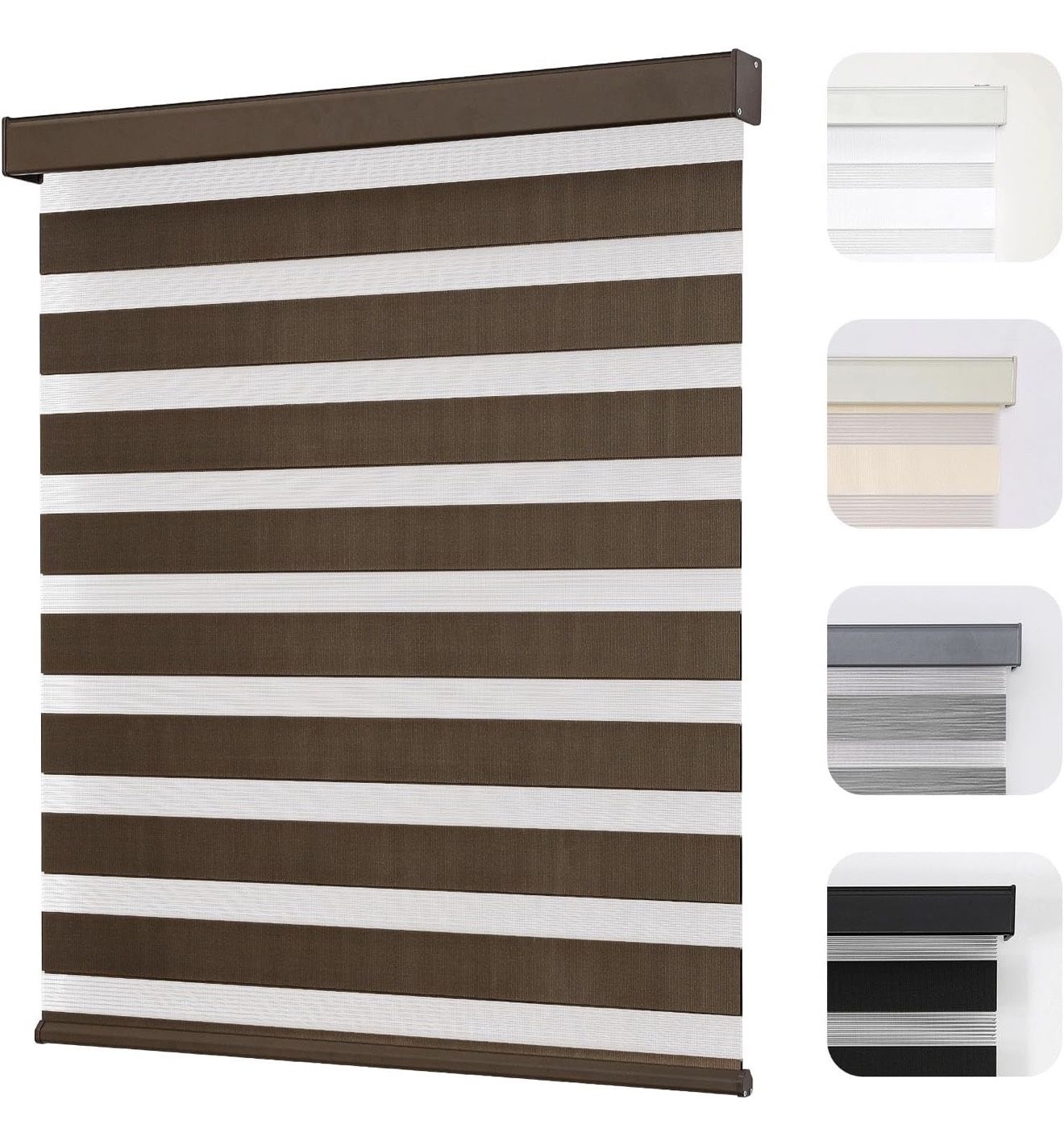 59th Ave Thomas Cordless Zebra Blinds for Windows, Dual Layer Light Control Window Blinds with Light-Proof Aluminum Cover, Free-Stop Roller Shades for Home & Office (Coffee,46" W x 75" H)