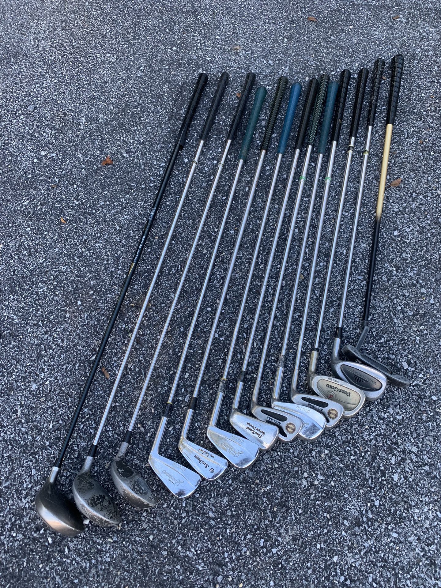 Golf Clubs for sale! Comes with 3, 4, 5, 7, 8, 9, 9, pitching, sand wedge, putter, 1 3 wood and 2 5 woods. With old carry bag. Willing to hear offers.