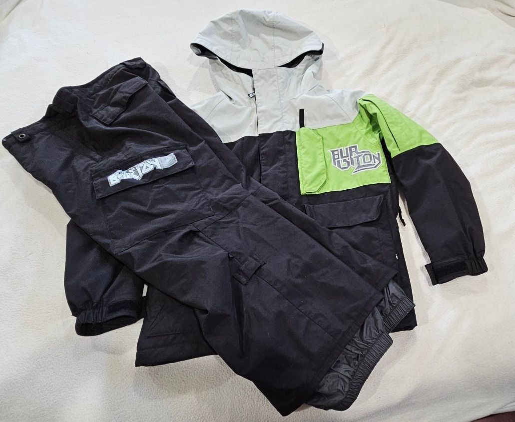 Very cool in great condition! Vintage original BURTON Dry Ride ski or snowboard set, size Medium kids 7/8. Waterproof/breathable,insignias on legs and jacket. Loaded with useful features including chest pockets, vents, hood with visor that covers helmet and also covers mouth for warmth, zippered pockets, Velcro adjustable wrists, powder skirt, separate windowed ski pass and headphone pockets. Pants are adjustable have vents and Inner boot gaiters with BURTON gripper elastic. Both in almost perfect shape. No fraying or wear on any cuffs (see pictures). $75 OBO