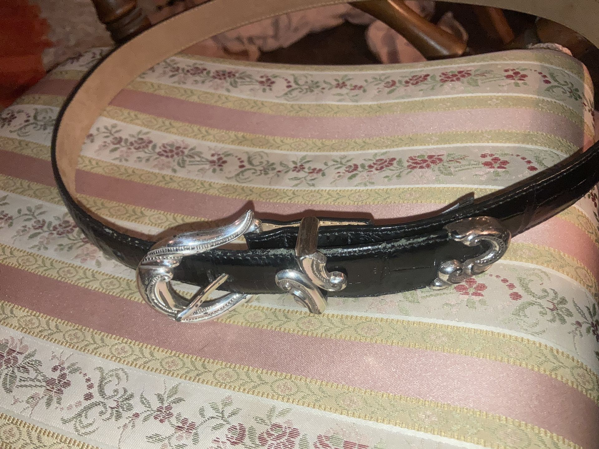 Has an ornate silver clasp size M great condition marked embossed resembles alligator size L 43” x 1”