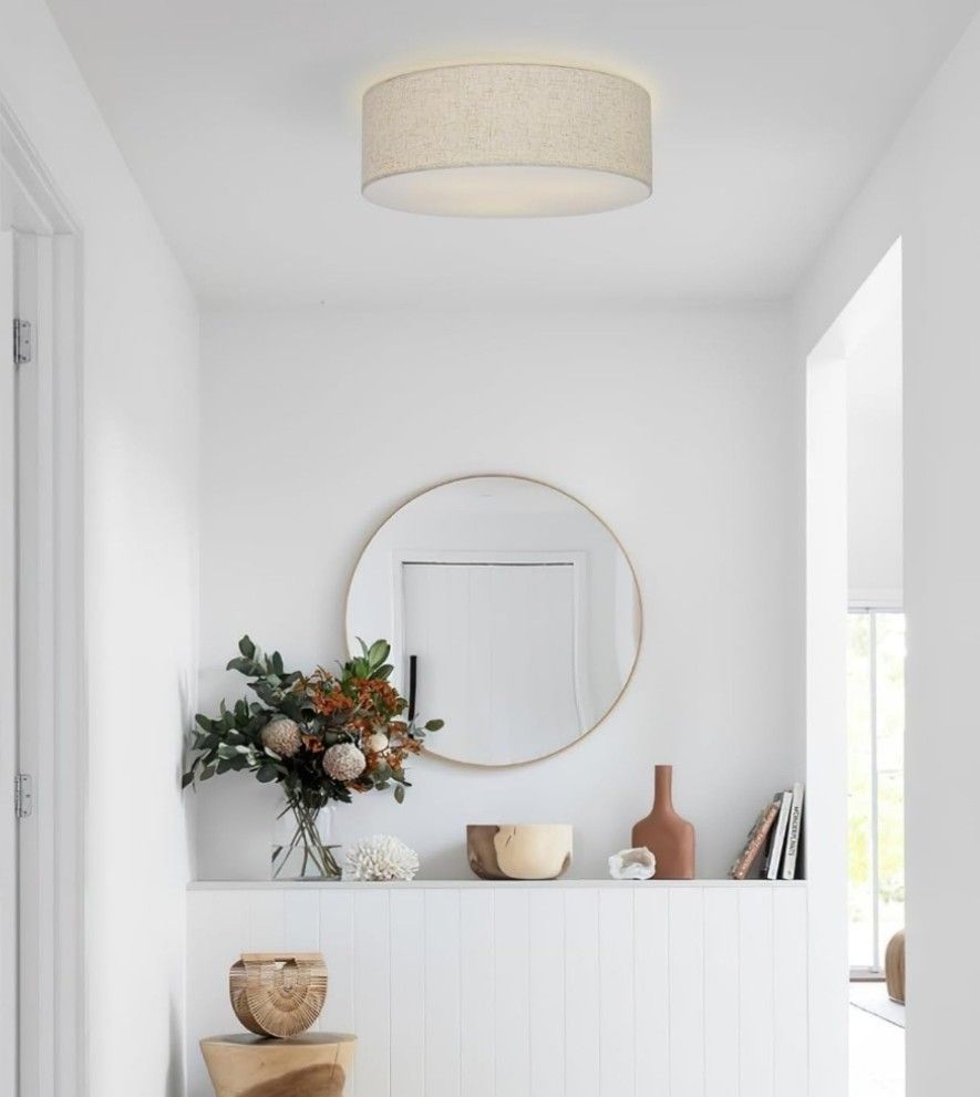 Modern 16" farmhouse linen drum ceiling light - Semi-flush mount