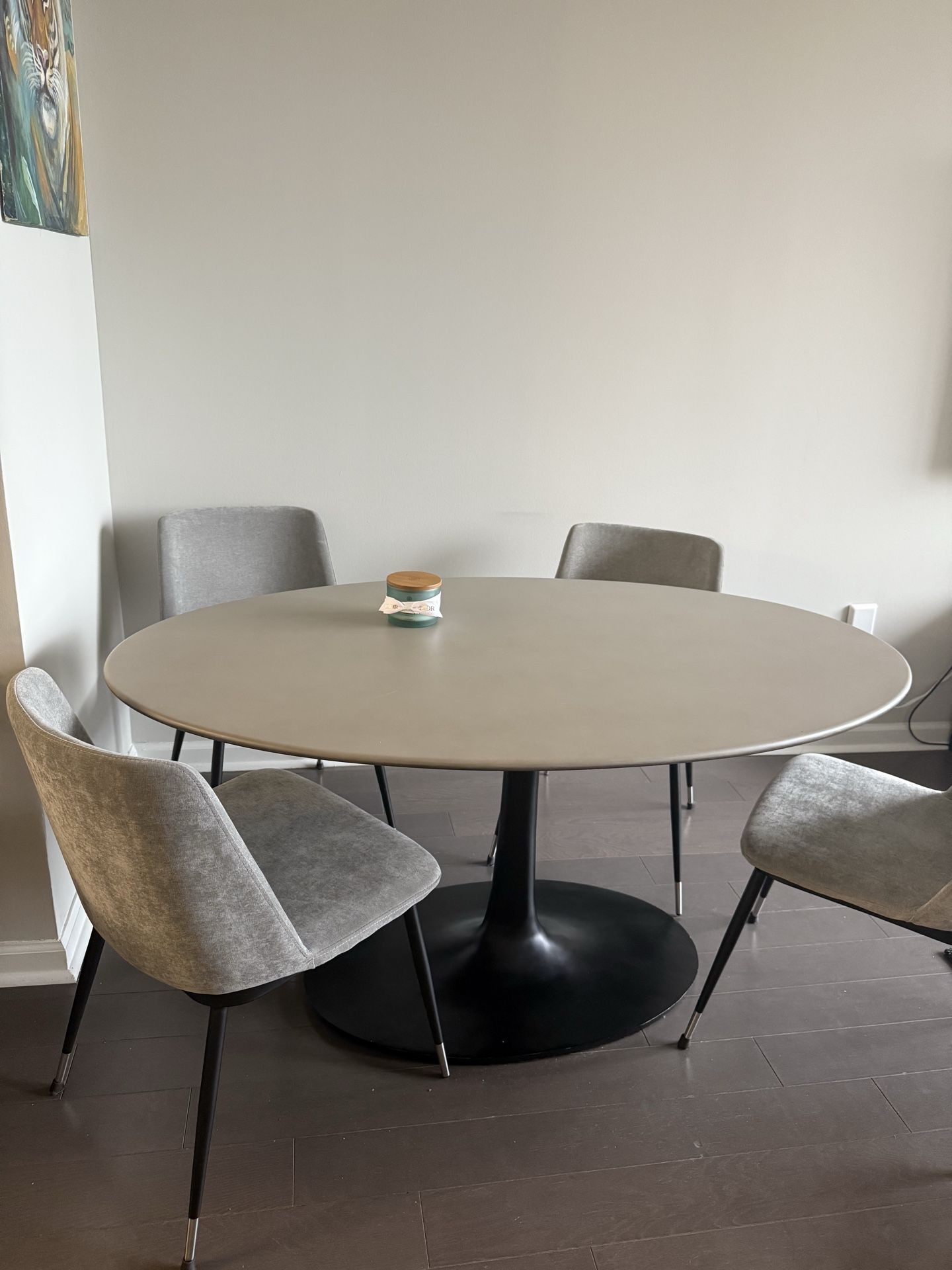 Beautiful Crate & Barrel Nero 60” Concrete Dining Table Selling because it’s simply too large for our space. The table is in excellent condition with very minimal use. Originally paid $1,300, asking $750. Features a high-quality concrete top paired with a sturdy matte black base—extremely durable and a true statement piece for any dining area. Chairs in the photo are also available for sale