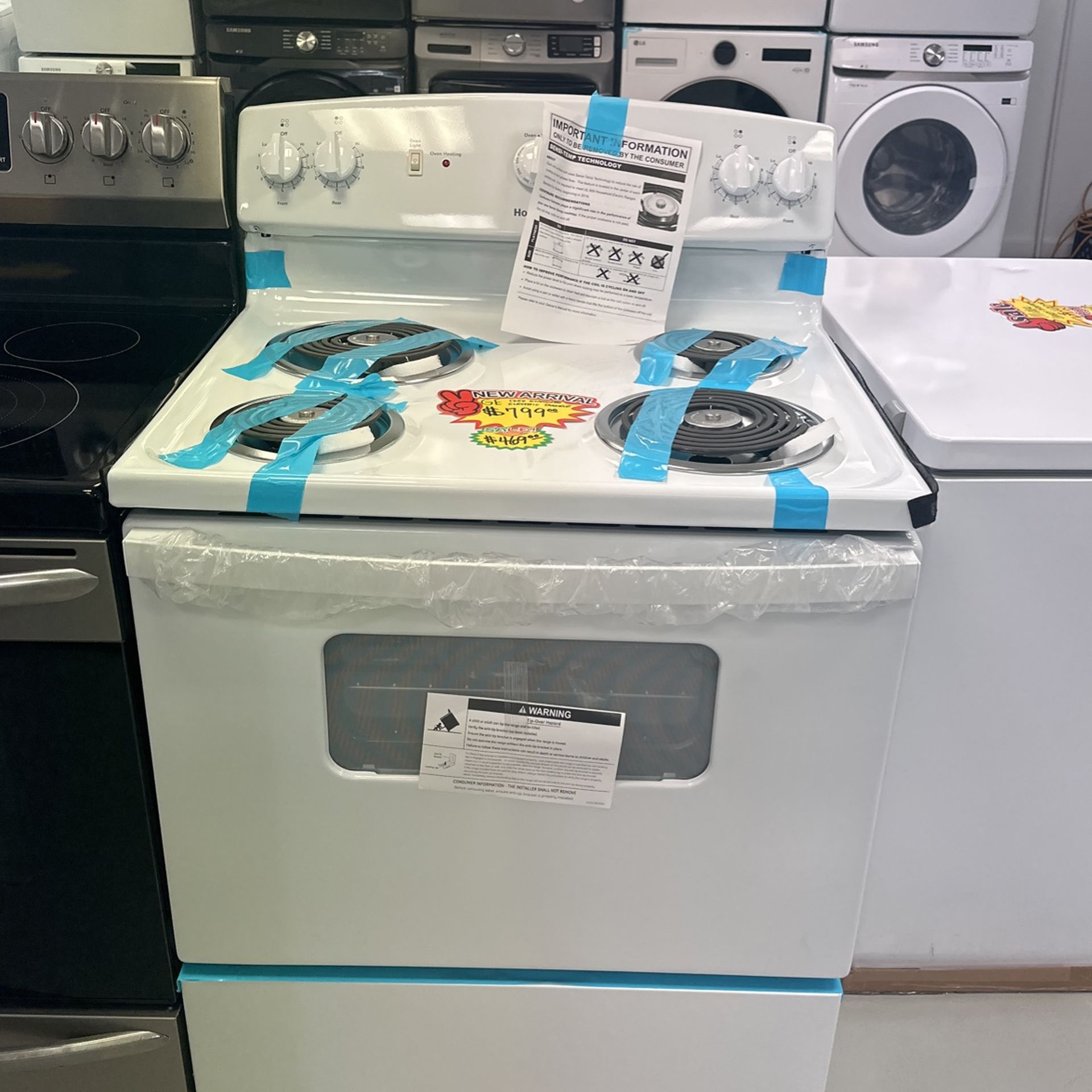 ☀️☀️☀️☀️Introducing the brand-new Hotpoint Stove in a pristine, classic white finish – a beautiful addition to your kitchen. This stove combines timeless design with modern functionality to become the centerpiece of your culinary space.⭐️⭐️⭐️⭐️ Despite being labeled as a scratch-and-dent model, rest assured that this stove is indeed brand new, straight out of the box
