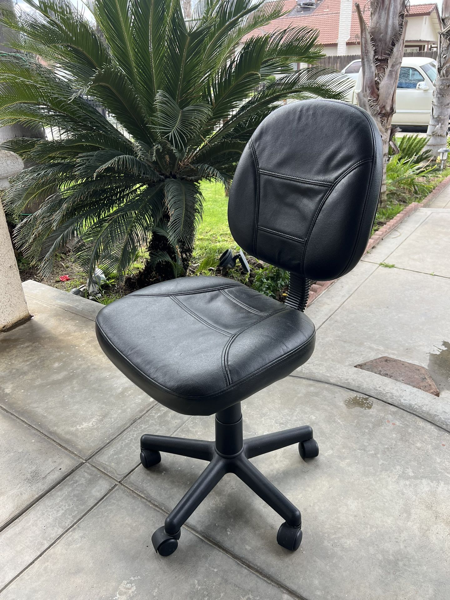 Black leather chair office good condition Wells works good the only damage is the small one showed in the photos.