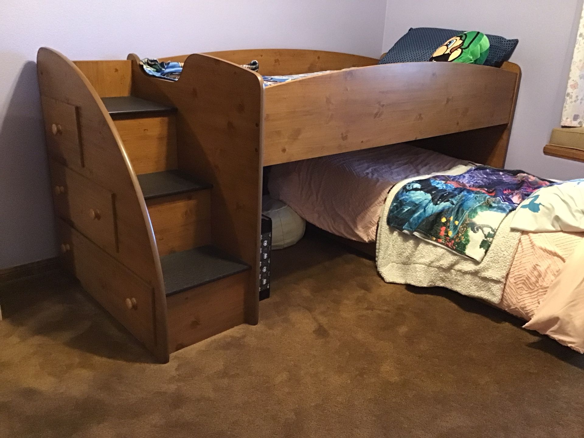 In good condition lower bed can be moved and used a a toy area no mattresses included
