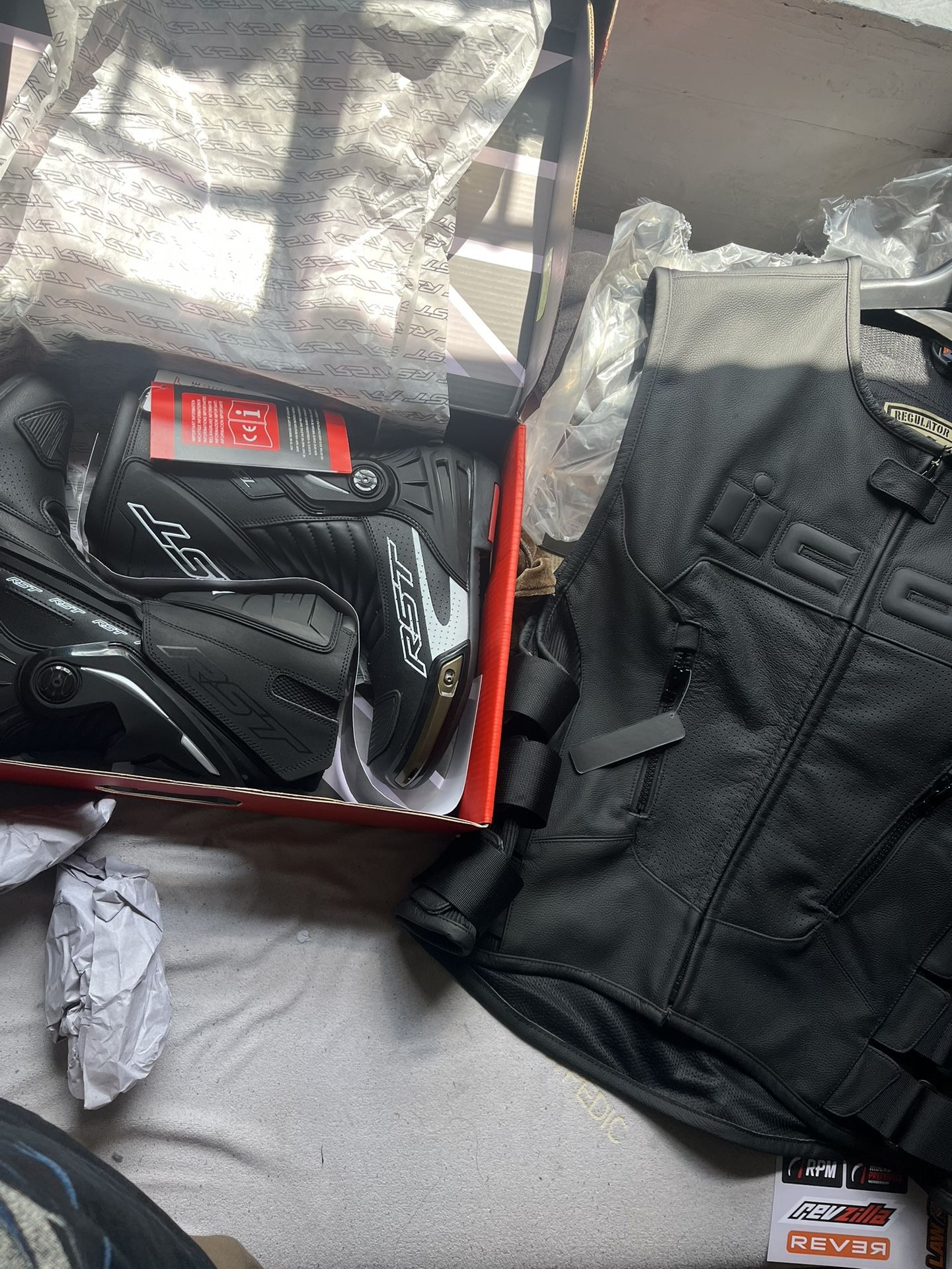 Boots are a size 10 Vest is a size 2xl-3xl The vest is brand new and the boots I used 1 time but basically brand new 300 for both