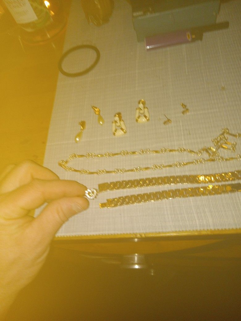 Vintage Old Jewerly ..heart Shaped Ring ,trifar Gold Choker Necklace,pearl Gold Necklace.