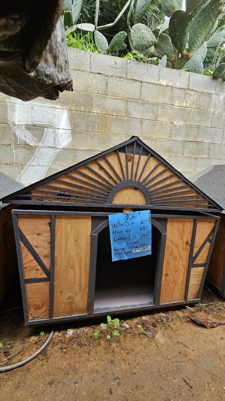 My dad builds dog houses Brand new large dog house ready to go $300 (firm on price) Dimensions are Width 5ft Length 3ft 3in Height 4ft 2in Roof comes off completely for easy cleaning (2 pieces) This house will fit 1 large or 2 medium size dogs comfortably All wood walls/frame House is lifted off the ground *Zelle or Venmo *we can delivery- extra cost* (Currently only delivering on wknd during the day) We are located in Corona