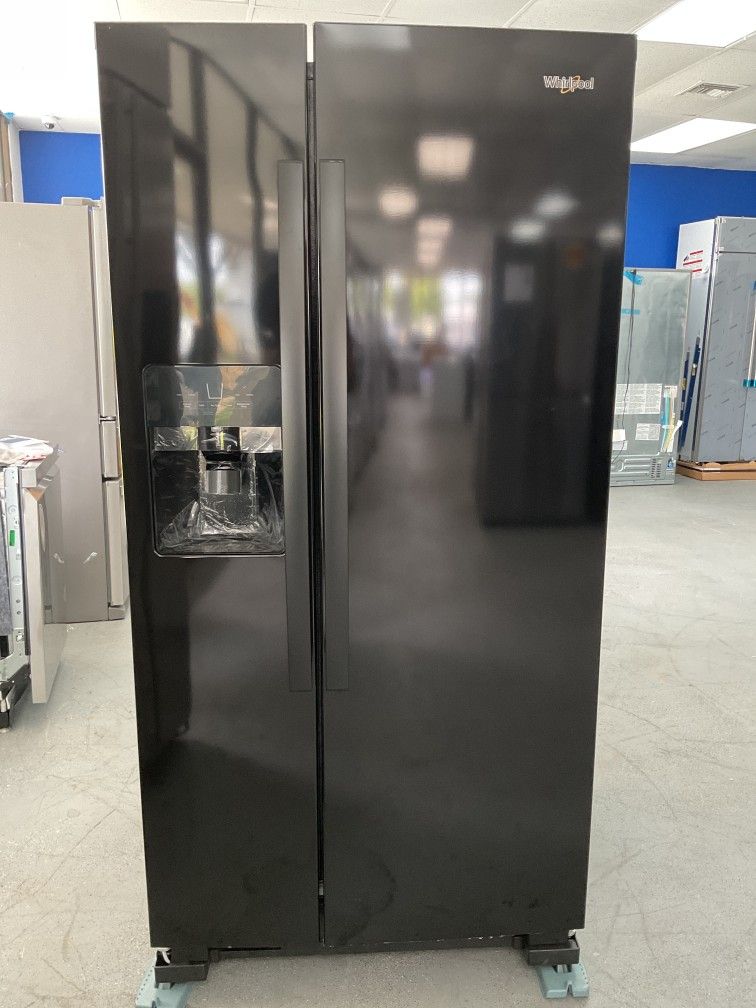 Whirlpool Side-by-Side Refrigerator in Black with Adaptive Defrost and Freezer Door Bins: 4 Fixed