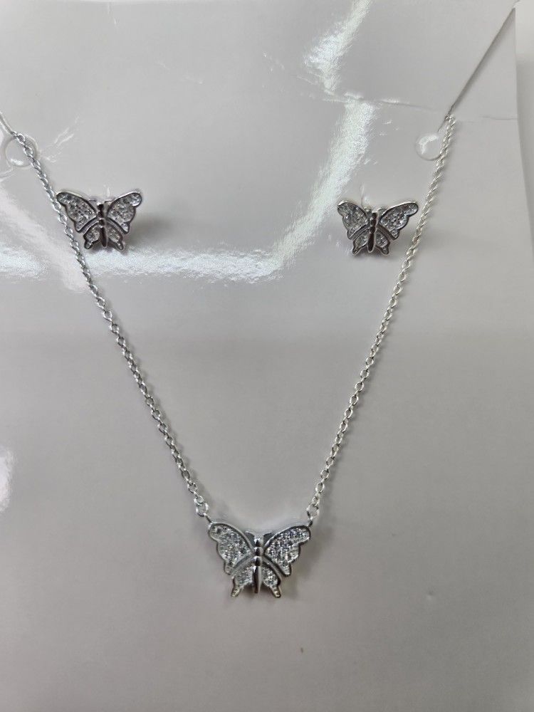 Beautiful New .925 Sterling Silver Butterfly Set (Necklace + Earrings) Made in Mexico • Genuine .925 Sterling Silver I'm selling this beautiful butterfly jewelry set. Includes: .925 Sterling Silver Necklace .925 Sterling Silver Earrings Detailed work with sparkling inlays Ideal for a gift or everyday wear