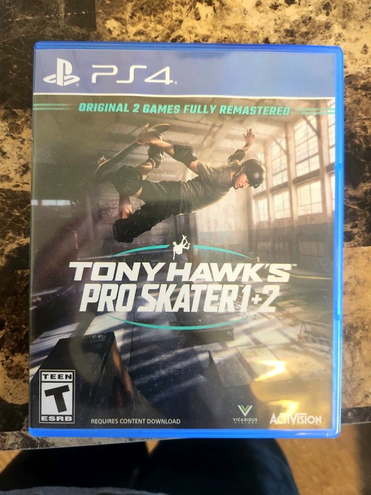 Perfect condition no scratches! Tony Hawk Pro Skater 1 and 2 remastered on PS4! Experience all the special moves and tricks from the Tony Hawk pro skaters and remake all your favorite combos with new characters in this skateboarding, sports video game.