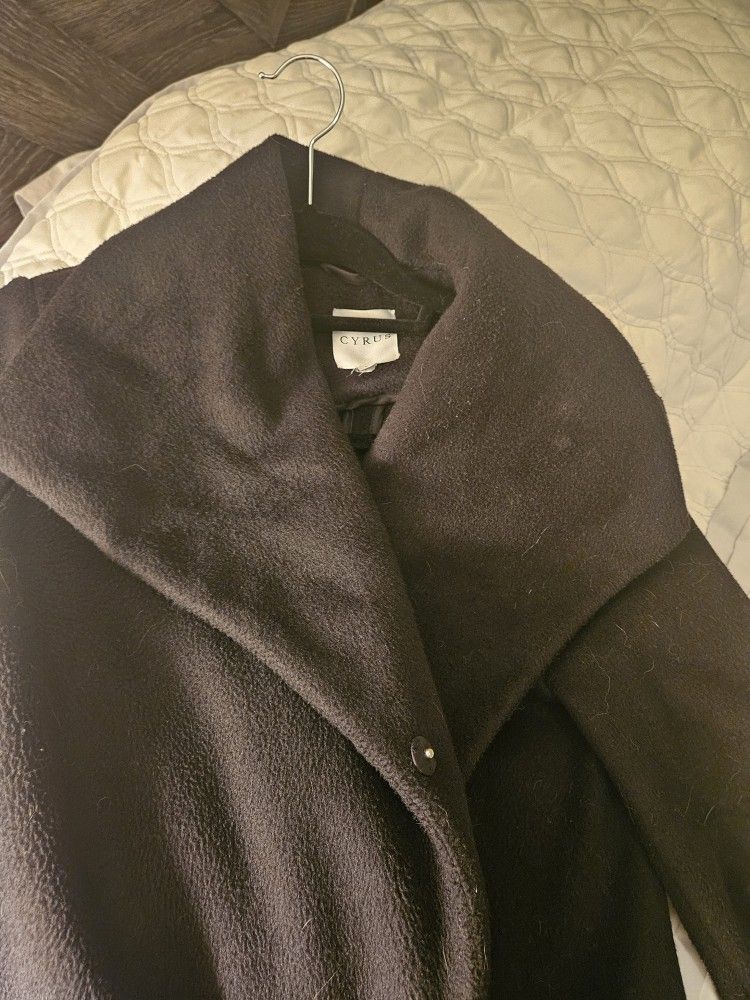 Women's Cyrus black peacoat style coat Knee length Size large Good condition Very warm