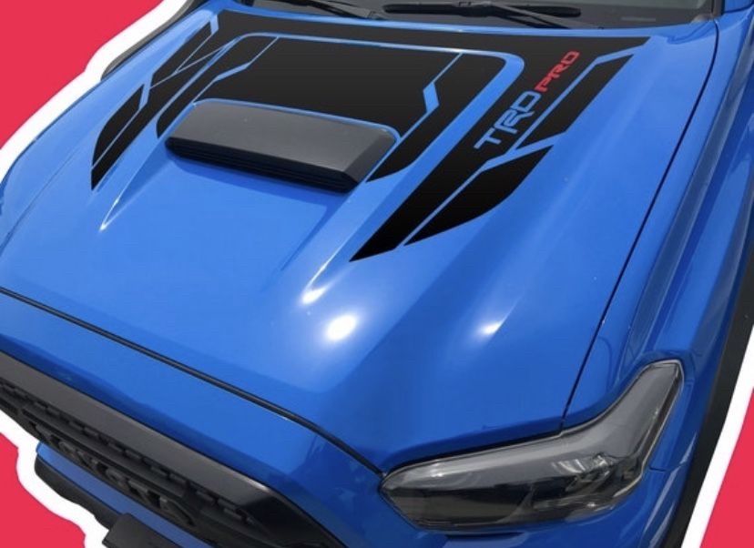 Toyota Tacoma TRD (2016-2022) Vinyl Graphics for the Hood. Made with Premium High Performance Oracal 651 Vinyl film. Lifespan of 7+ years. Finish: BLACK MATTE Freshly made to order with brand new vinyl. (We never store then for long period of time, Precisely computer cut, to perfectly fit your vehicle. Carwash Safe / Weather Safe Super fast Shipping. Each order includes a... - FREE SQUEEGY - FREE Cutting BLADE / Pin π
