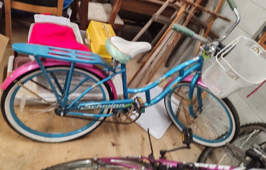 Schwinn girls bike with basket good condition will blow up tires and wash off for u its been in basement for a while