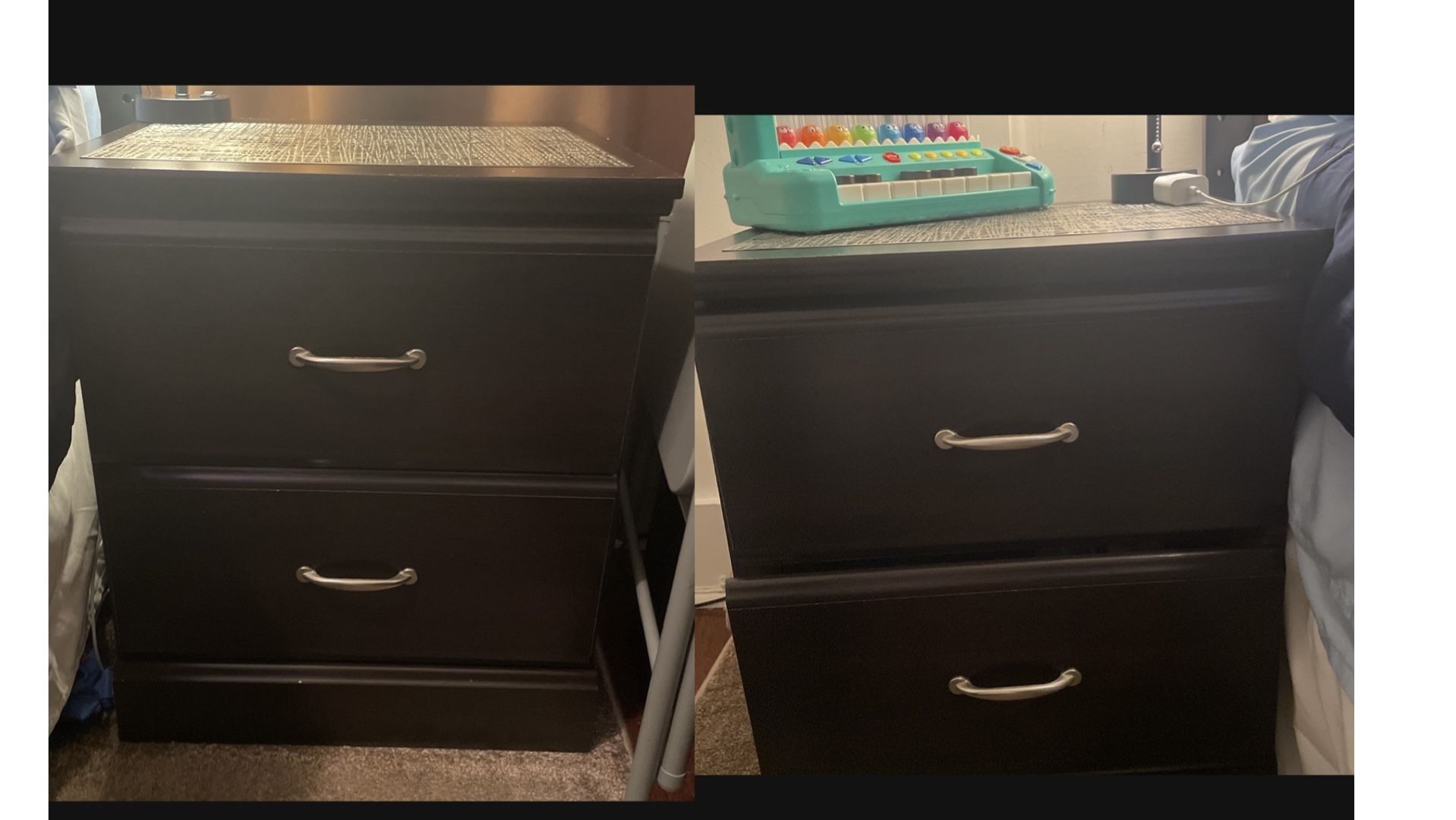 2 night stands great condition only had them for a few months need a toddler bed asap 85$ 2 for the price of 1 great deal need them out fast!! Height and wide & length are in the photos