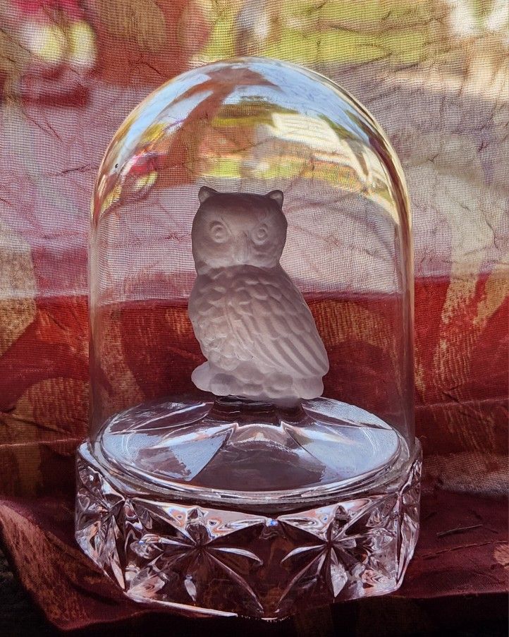 Vintage ArtMark Frosted Owl in Clear Crystal Dome 4"tall and 3"wide