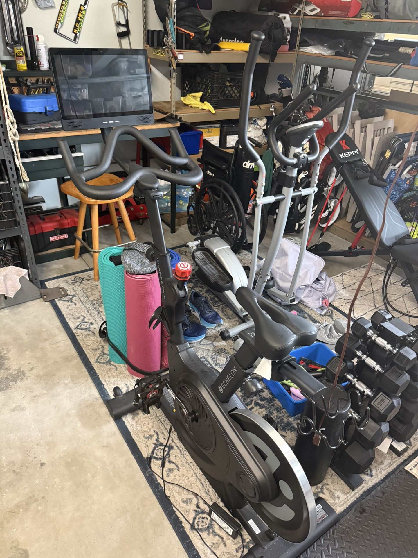 Stationary Bike Purchase a echelon membership for exercises or just ride stationary without the membership Screen moves forward and back Adjustable setting for individuals height