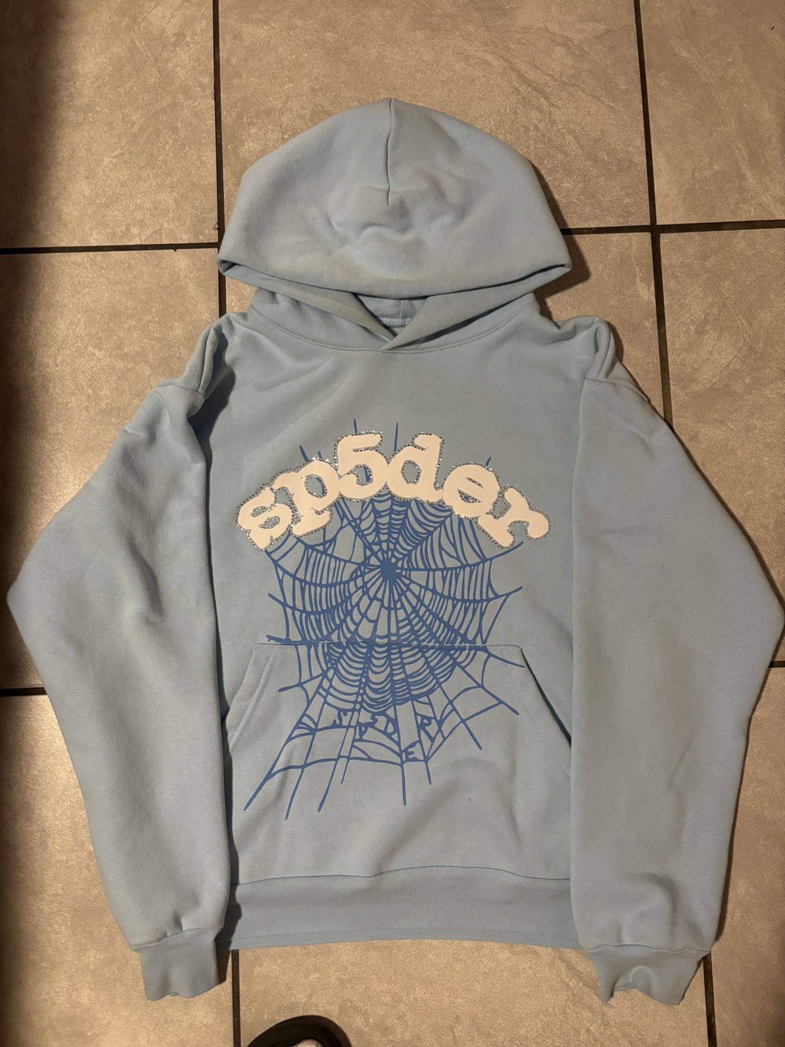Sp5der hoodie light blue