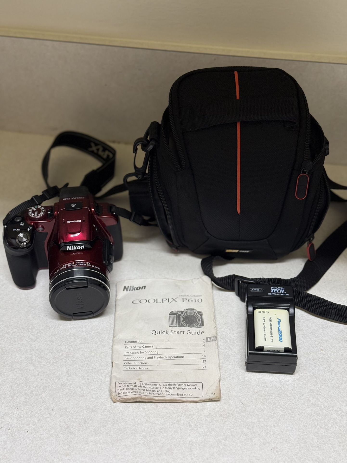 Camera is barely used in new condition! Has Two batteries, charger, 32 gb memory card, manual, and carrying case