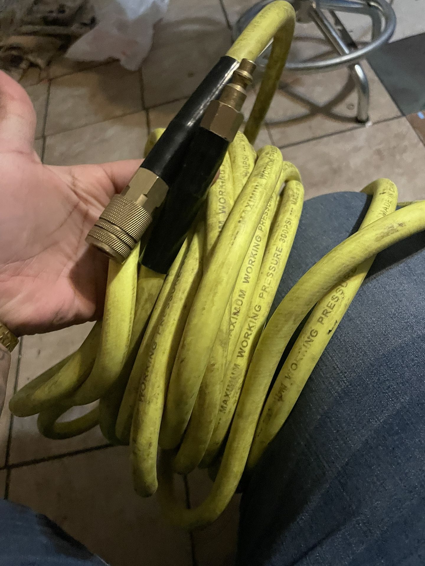 3/8 in. x 50 ft. Flex Reinforced Hybrid Compressor Air Hose Bend Restrictors 300 PSI in Yellow