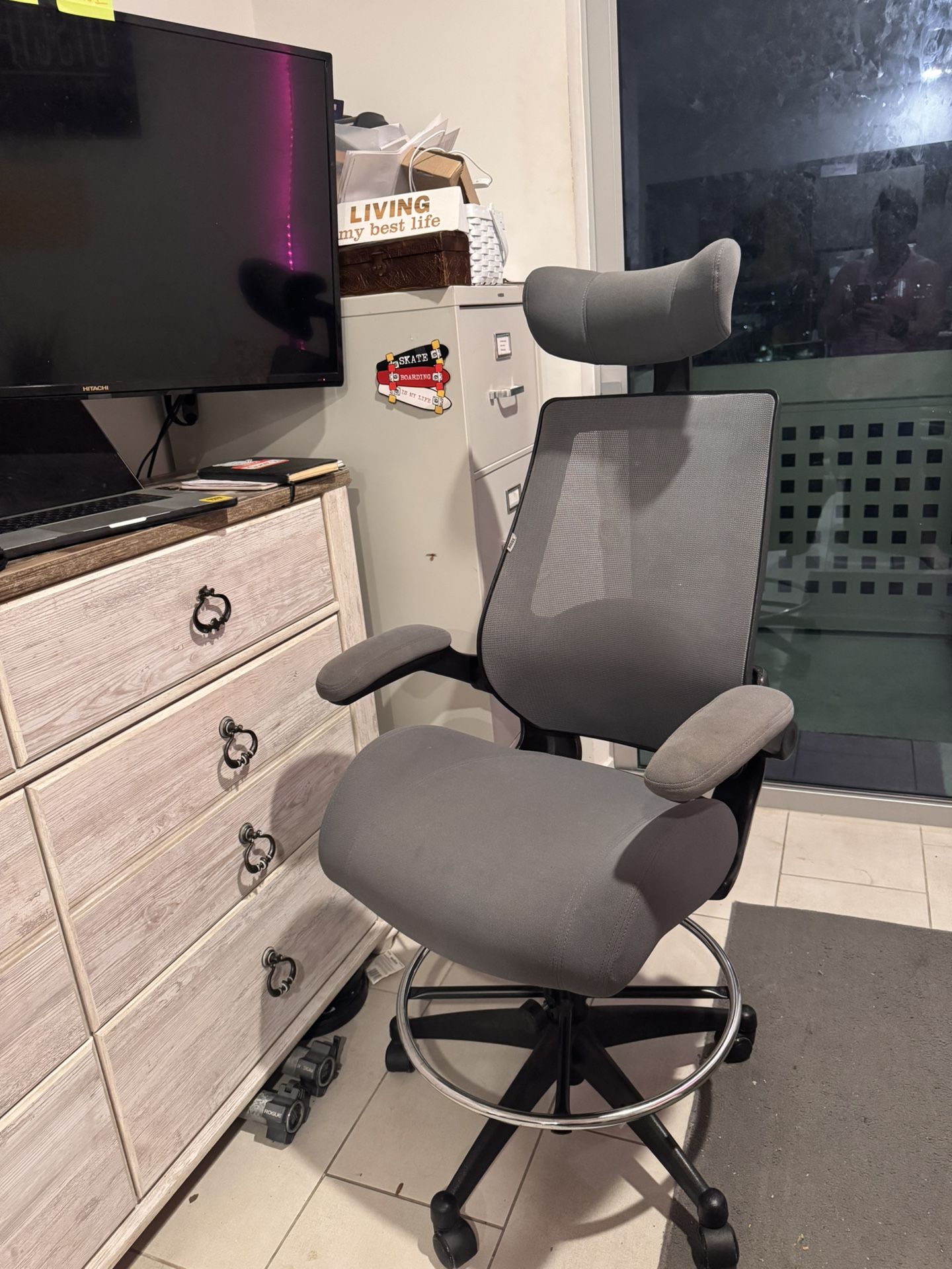 **Retails for $229 on Amazon (https://offerup.com/redirect/?o=aHR0cHM6Ly9hLmNvL2QvM1pUSEd1eg==)** - Drafting Chair With Headrest: 3D designed headrest with height adjustable foot ring.The 90-degree flipped arms can save indoor space, suitable for stand-working,sit-working,bar,Café and so on.With a oversize foot ring helps you swivel 360 degree, reduce the pressure on the legs and increase the comfort of the back and buttocks. - Ergonomic Office Chair:With 2.36 inches height adjustable free swivel function headrest.There has a free placed lumbar cushion on the back to protect your waist and spine during long working hours.A prominent part in front of the cushion is designed to reduce the pressure of the waist and promote the circulation of blood in the legs. - Comfort:The breathable nylon mesh back and 4-inch thick streamlined seat cushion are soft and elastic. High-quality molded sponge can be used for a long time without deformation and collapse.Nylon mesh and molded foam greatly improve the breathability and durability to avoid the feeling of muggy,especially in the hot season. - Stability:High standard and quality 360-degrees swivel office chair with smooth rolling castors allow you to move anyway.The high-bearing five-star base is evenly distributed in strength, after using long time it is still stable,not easy to break and reduce the sound when sliding.