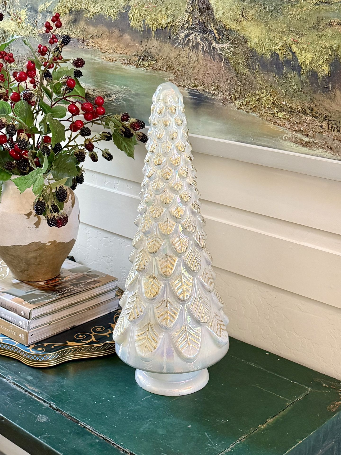 Christmas Tree Glass Large 20” Tall Iridescent, Gold Trim