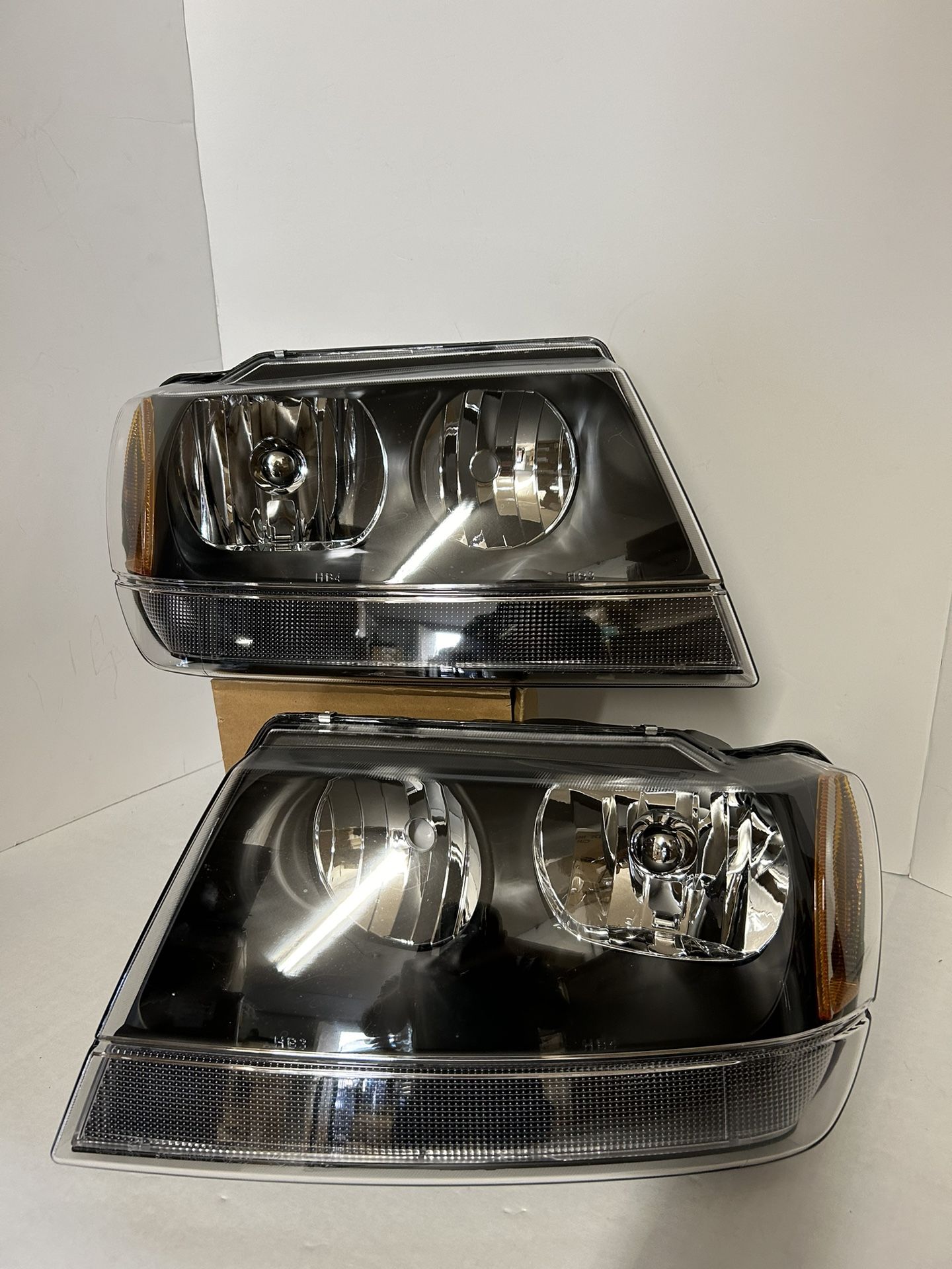 Said Of, Headlights jeep gran Cherokee Black Housing Amber OE 1999/2000/ 2001/2002/2003 UP 2004