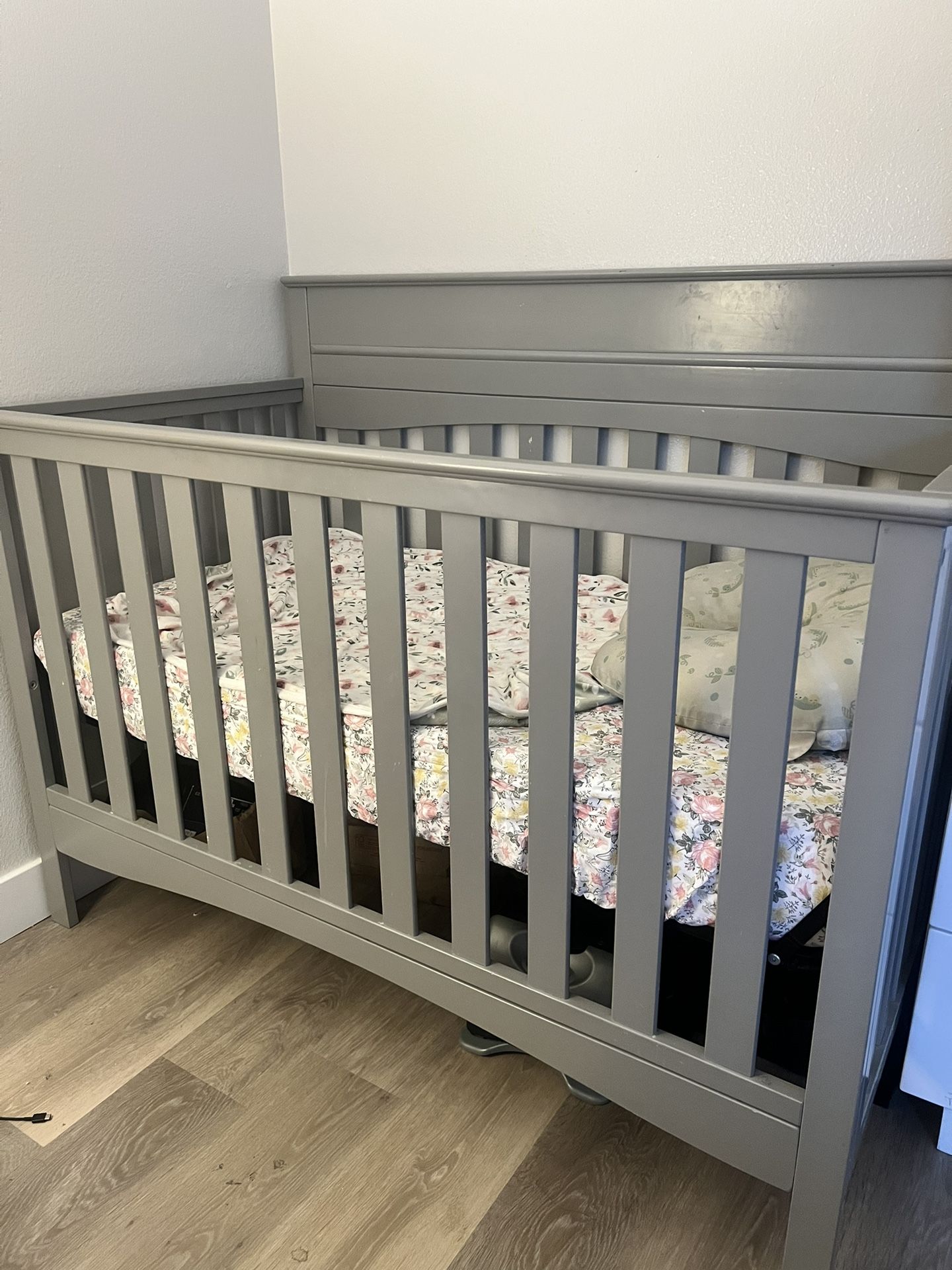 Crib is not assembled and I also do not have instructions. Mattress and mattress protector and pink and flower crib sheet included