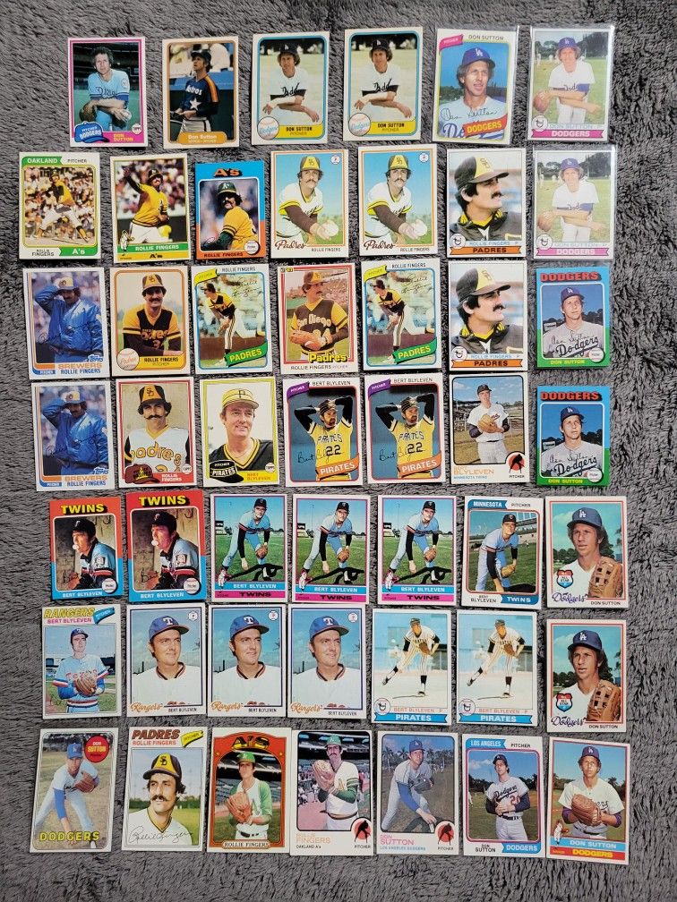 Vintage Sports Cards Featuring Hall of Fame Pitchers Don Sutton, Rollie Fingers & Bert Blyleven ( 70s & 80s).