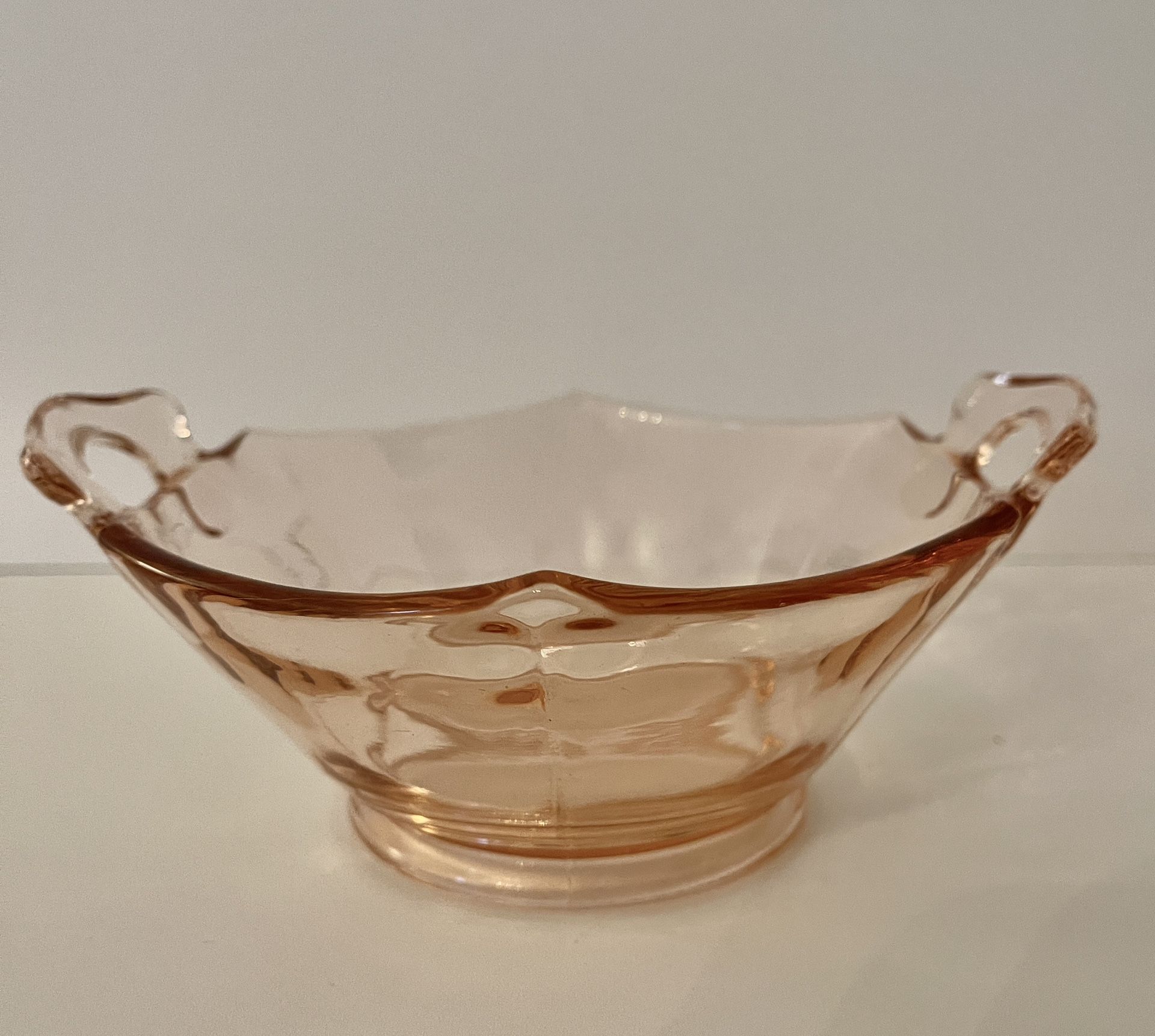 Vintage Pink Depression Glass Double Handle Small Serving Candy Nut Bowl