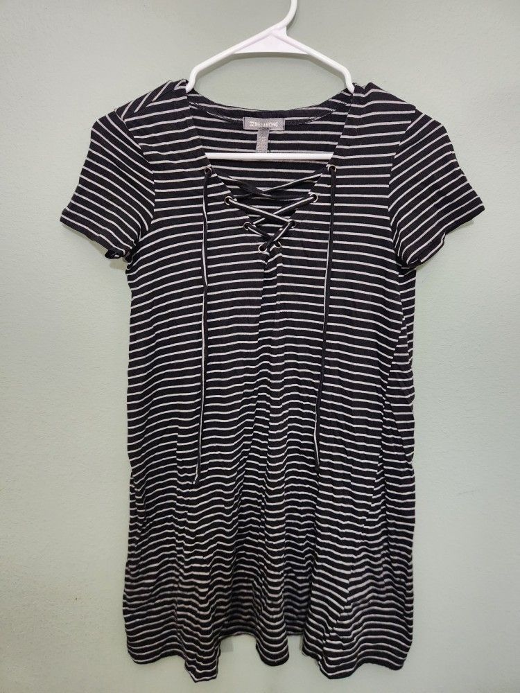 Billabong Black and White Stripe With Tied-Neck Long Blouse, Size XS