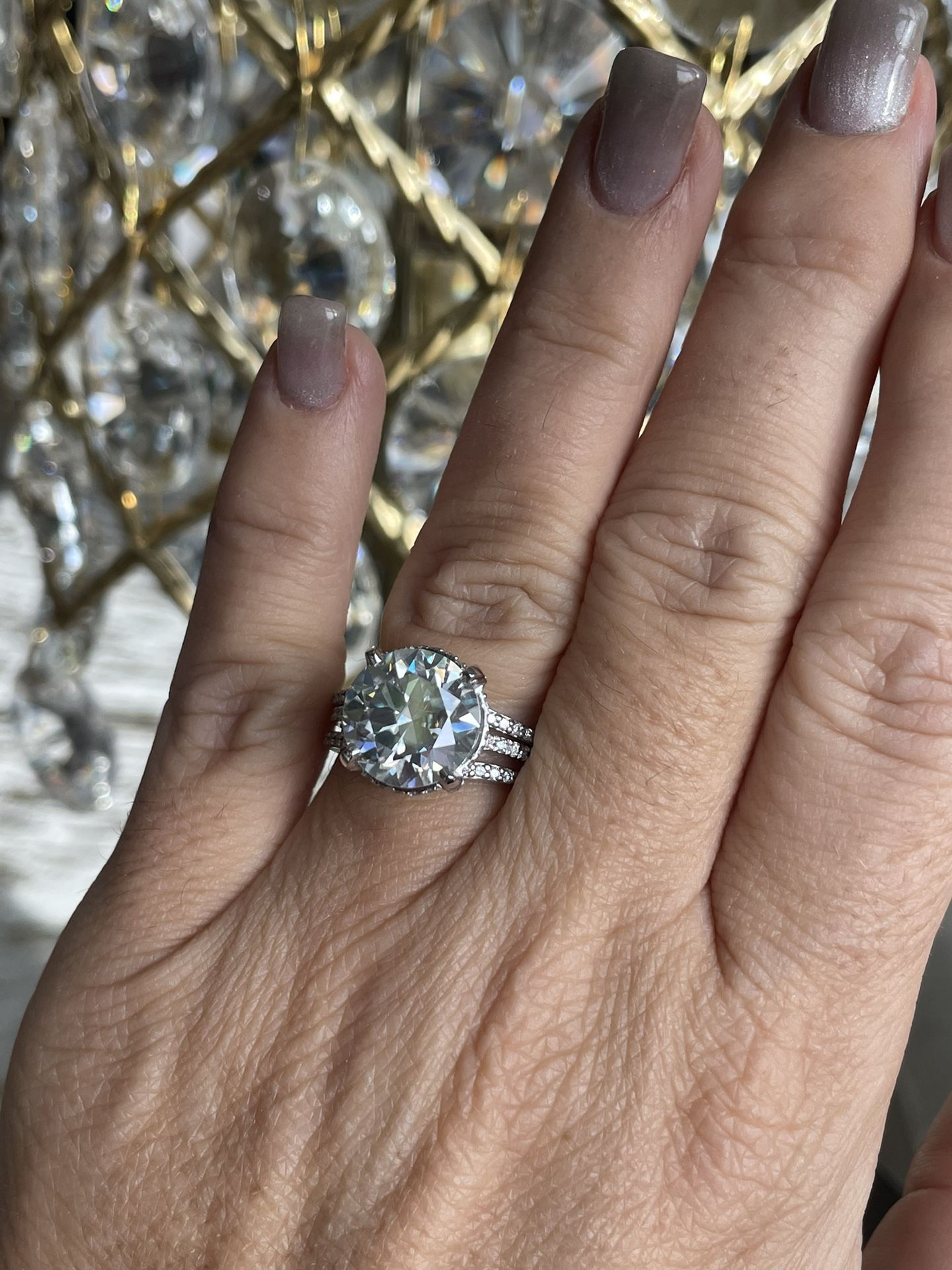Platinum Diamond Ring With 10mm Moissanite Center FREE Wrap