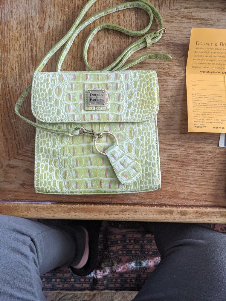 New with tags crocodile and embrassrd leather green and pink see picture