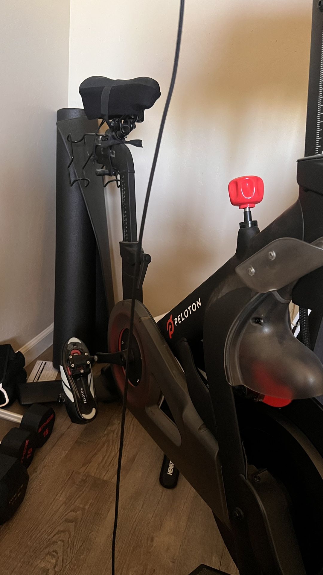 Like new. Used about 10times. Comes with two pairs of shoes and weights
