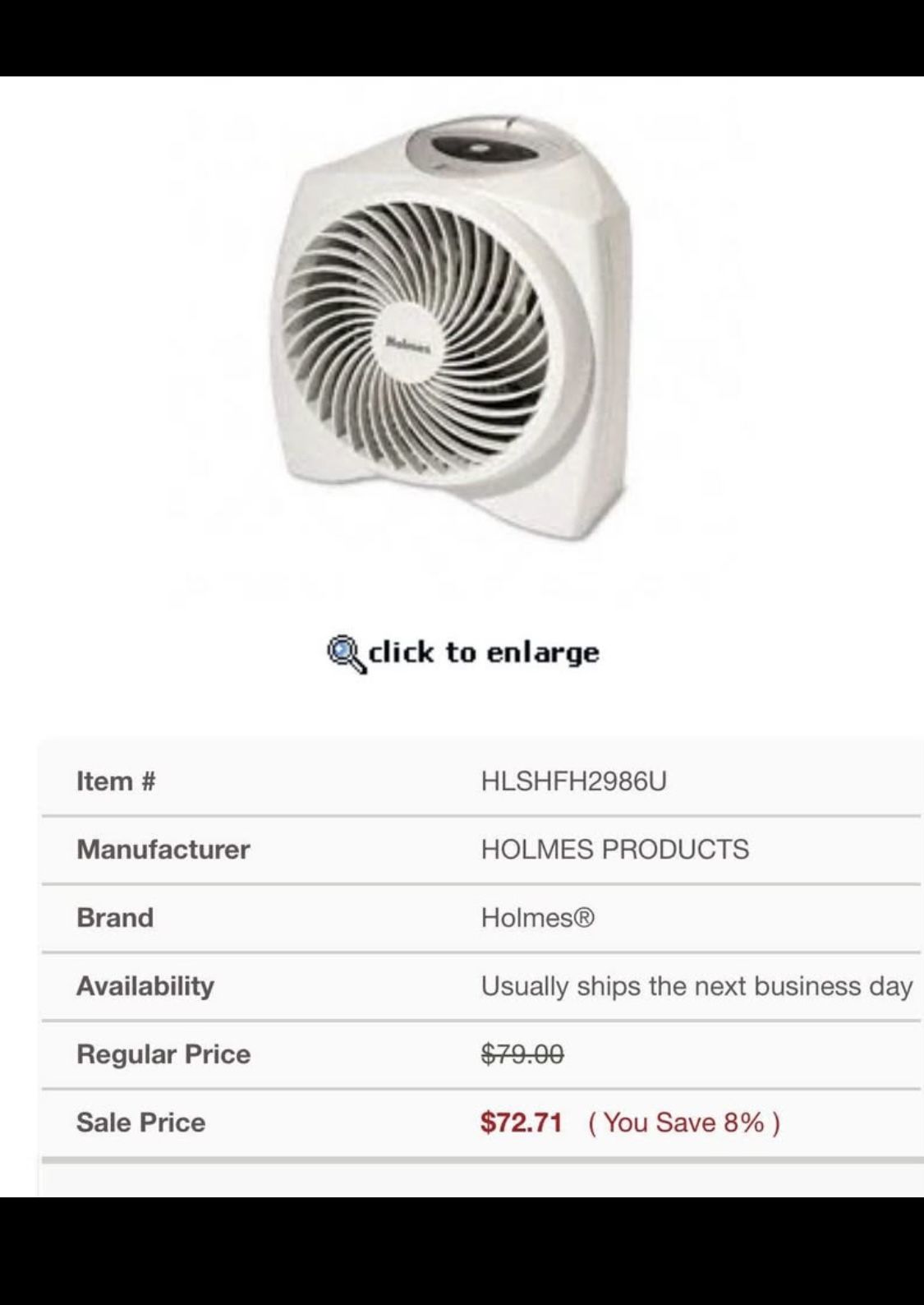 Holmes one touch whisper quiet 1500W power heater 11.5”W x 9”D x 11”H Retail: $75 Works perfectly, some cosmetic wear Price Firm Pick up 22206