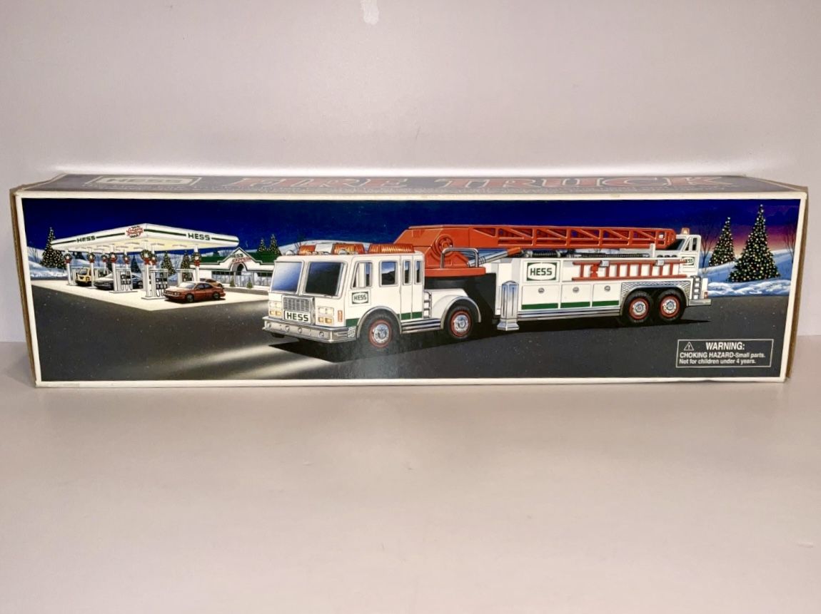 The Hess Toy Truck 2000 Fire Engine is a limited edition collectible toy truck produced by Amerada Hess Corporation. The 1:50 scale plastic truck features a fire department theme, making it a perfect addition to any toy vehicle collection. This promotional item comes in its original box, adding to its value and appeal to collectors of contemporary diecast and toy vehicles. Perfect for fans of the Emergency! character family, this white Hess truck from 2000 is a must-have for enthusiasts of unique and nostalgic toys. Please see all pictures