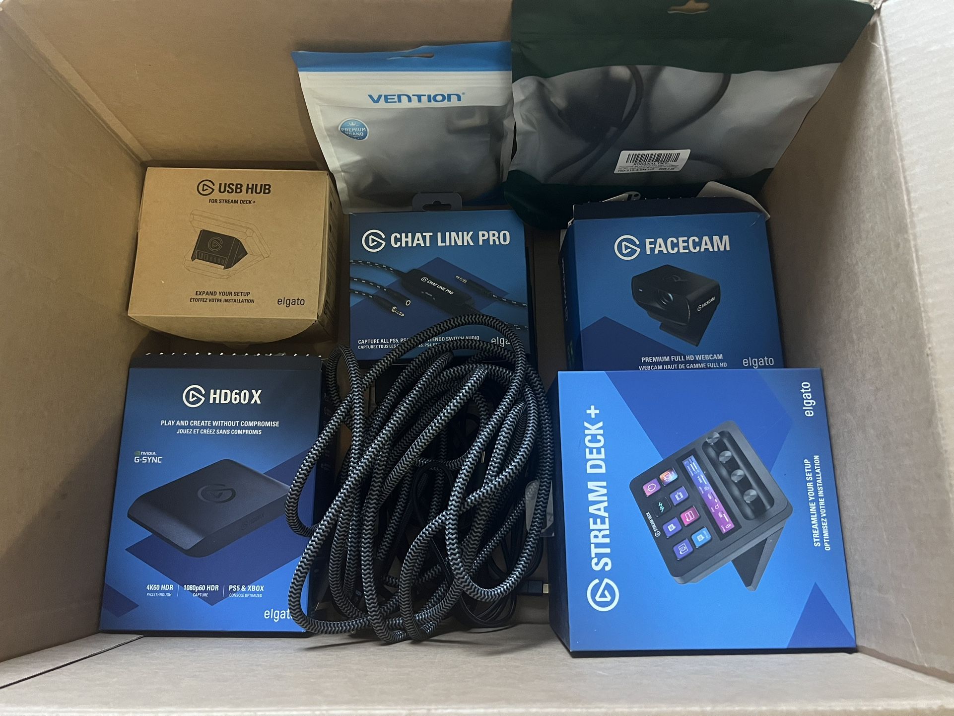 STREAMING / PODCASTING / AUDIO / VIDEO - El Gato Stream/Record System $300 OR BEST OFFER (Newly Used In Original Boxes) streaming/podcasting/audio, video and music studio set up - (TVs, Computer and Monitors, Mic, Keyboard, Mouse, Desk and LED Lights NOT INCLUDED) WHAT IS INCLUDED: El Gato Stream Deck+ with El Gato USB Hub, El Gato FaceCam, El Gato HD60 X Capture Card, El Gato Chat Link Pro, extra 10 Ft 4K HDMI Cable, extra 3 Ft 4K HDMI Cable, extra VGA to HDMI Converter. $500 Set-Up for $300 OBO. All the software (El Gato Stream Studio and more) is already loaded and ready to plug in and go. You can also download the software for FREE directly from the El Gato website. FOR USE ON WINDOWS or MAC and integrates perfectly all apps! *** WILL DELIVER IN TOWN *** ** CHECK OUT MY OTHER OFFERS **