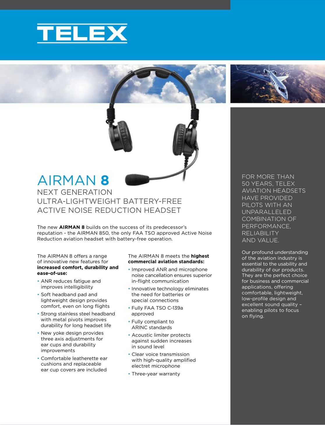 Excellent condition. Two plug version. Adapter to Airbus included. Includes three cases. One is original TELEX soft sided case, another is a more protective hard sided case. Includes three extra microphone wind screens. Automatic Noise Reduction (ANR) powered by the aircraft. No batteries required! I used it at American, but I’ve lost my medical.
