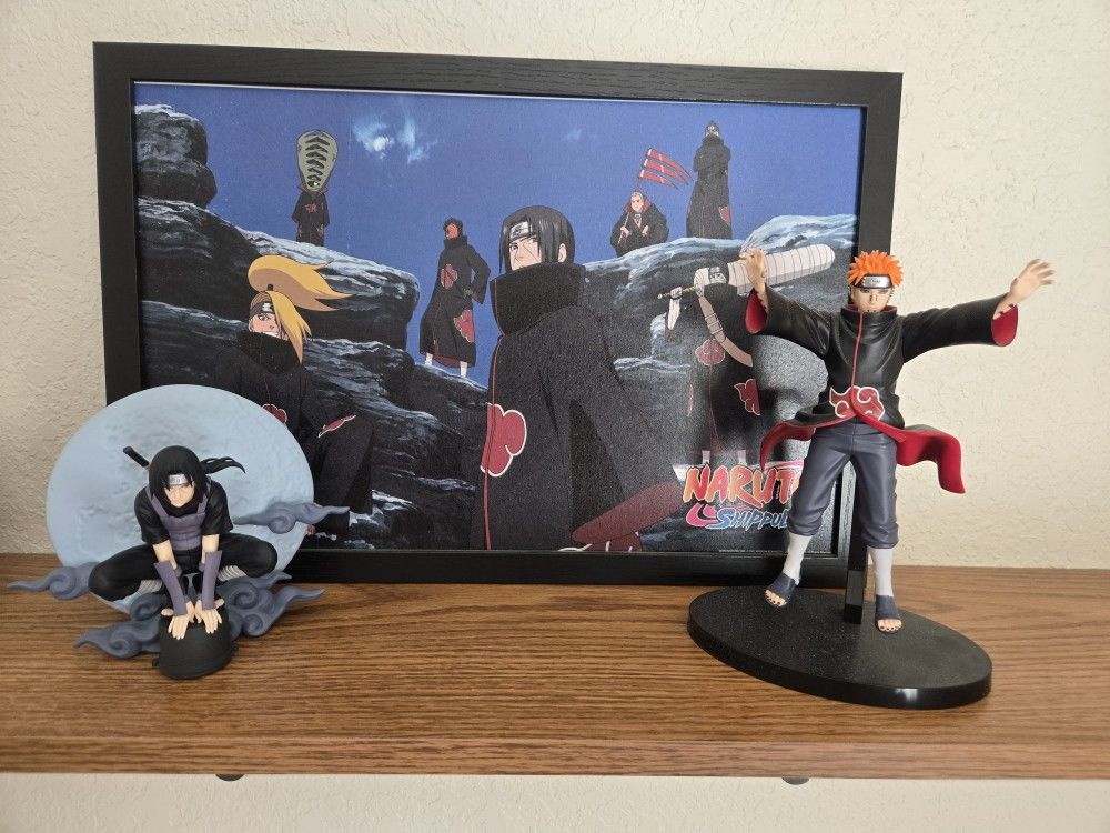 Have 2 figures and some wall art. Itachi, pain, akatsuki from Naruto great condition