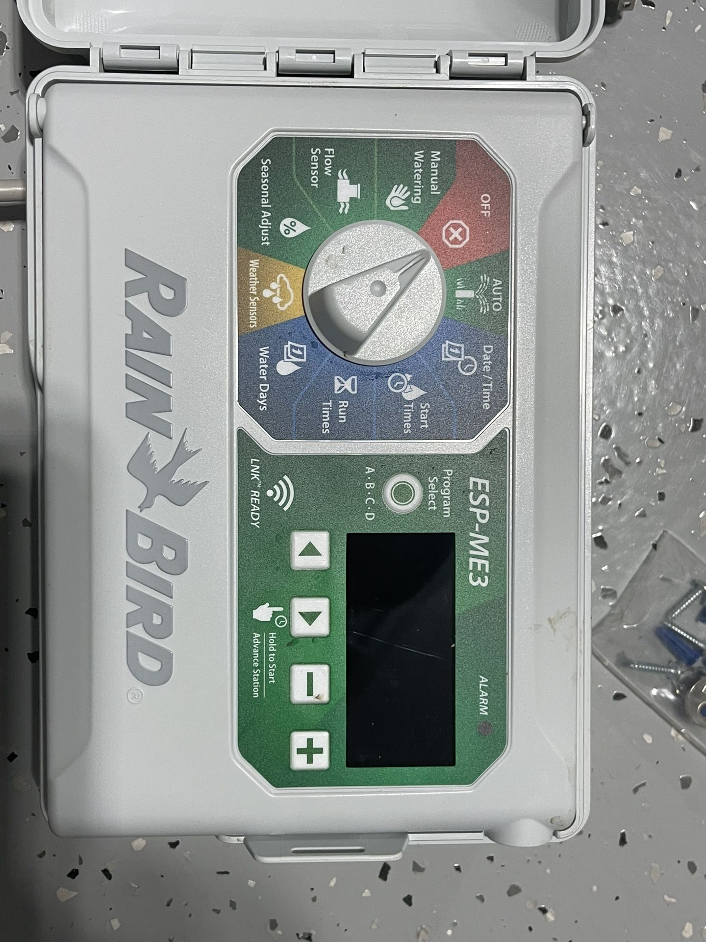 Rain bird 7 zone . Got in with builder for my home and used only one month. Upgraded to rachio