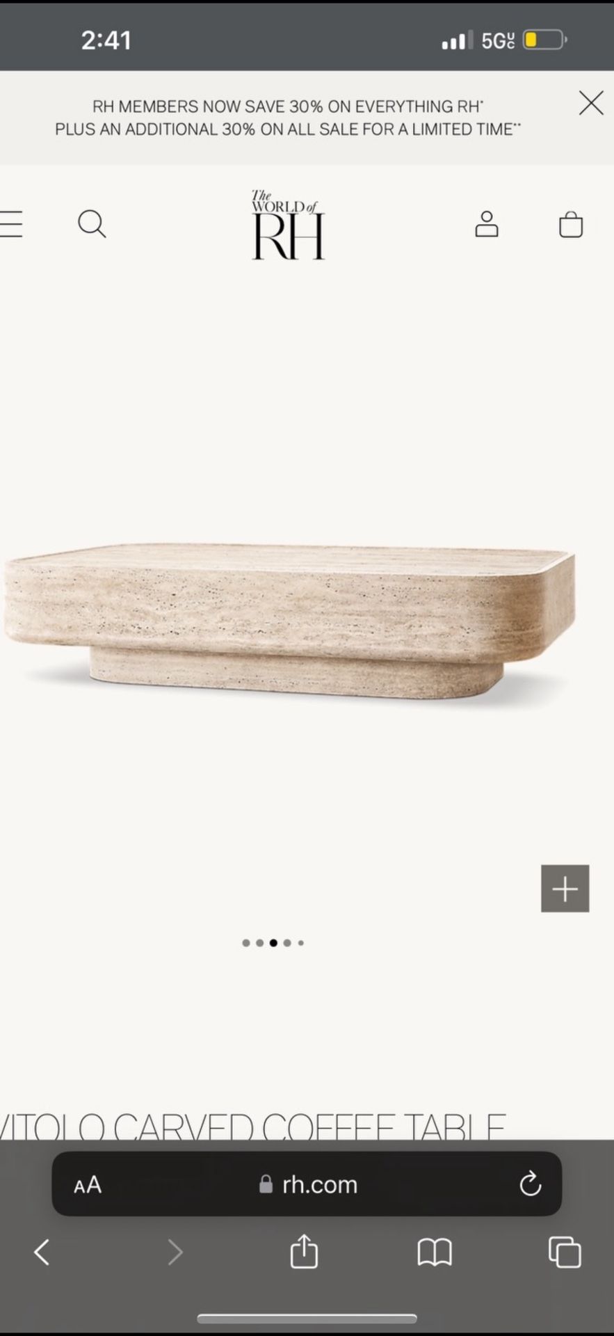 Restoration Hardware Vitolo Carved Coffee Table – Italian Classico Travertine – Brand New Retail Price: $13,140 + $150 shipping surcharge My Price: $7,000 This is an authentic RH Vitolo Carved Coffee Table in Italian Classico Travertine, size 76”W x 32”D, brand new and never used. I originally purchased this table from Restoration Hardware and, due to a shipping issue, the company sent me an additional table — however, this one arrived without the bottom travertine base. It’s 100% unused, in perfect condition otherwise, and still has that signature RH craftsmanship and beautiful natural veining. The missing base is the sole reason for the discount — perfect for someone who: • Wants to custom design or fabricate their own base for a unique look. • Is looking for a stunning RH travertine tabletop for another project. • Wants RH quality and materials at nearly half the retail price. Details: • Brand: Restoration Hardware • Model: Vitolo Carved Coffee Table • Size: 76”W x 32”D • Finish: Italian Classico Travertine • Condition: Brand new, never used (missing bottom base) • Pickup preferred, delivery available for an additional fee. This table retails for over $13,000 — take it home for $7,000. Serious inquiries only, please. 📍 Located in valley village