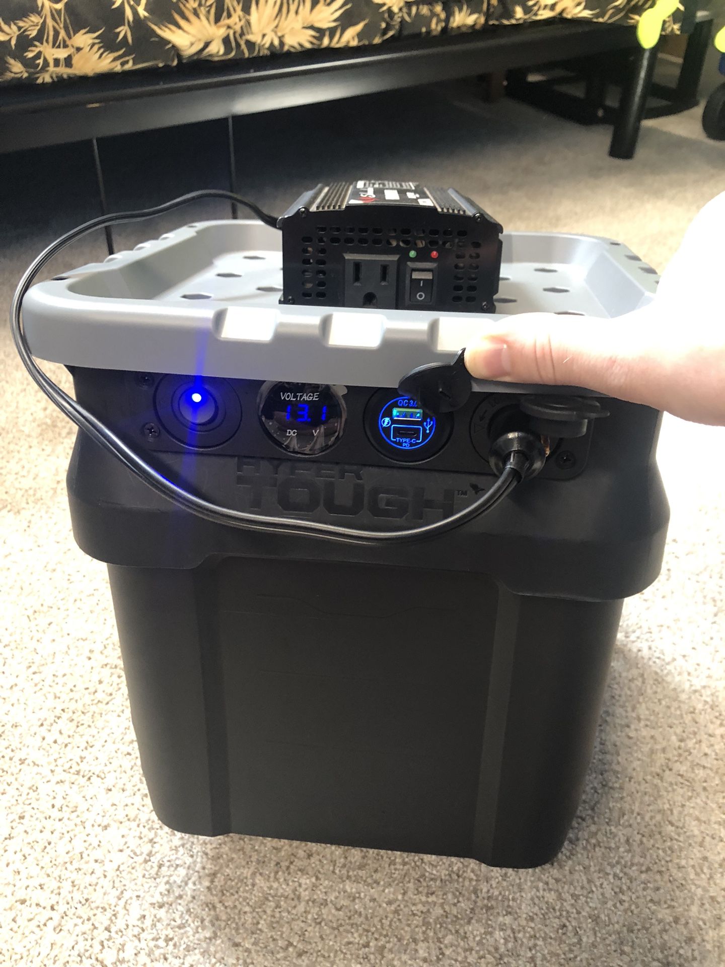 12v 100ah (1280 watts) battery. Usb and 12v output. Solar charging input, 10amps. Got tired of the overpriced crap so built this. Twice the power and half the price of anything on market… 100w Solar panel +50ft extension is 100$extra Super powerful for all your fans, lighting and electronics charging. (Don’t use for cooking/heating elements over 400w unless you add a more powerful inverter directly) Benefits of this is its upgradable, serviceable, expandable up to 20kw… 8 year warranty on battery… Please ask any questions or if you’d like something bigger made! Thank you!