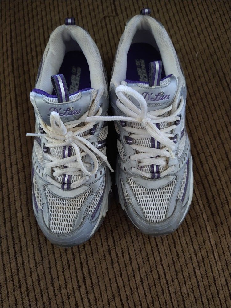 Size 8.5 Skechers. Purple, white, silver. Has discoloration. South Natomas