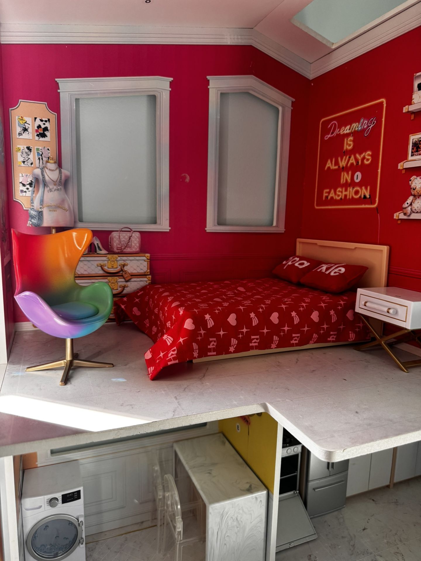 6 room dollhouse includes 5 dolls, extra clothes, shoes and accessories. REAL WORKING SHOWER and SINK: After filling with water, the shower and sink both spray water. BUBBLING HOT TUB: Fill the Hot tub with water, press the button and get bubbles. Fits 4 Fashion Dolls. WORKING ELEVATOR: Elevator moves up and down and fits 2 dolls. 4ft tall, 3ft wide.